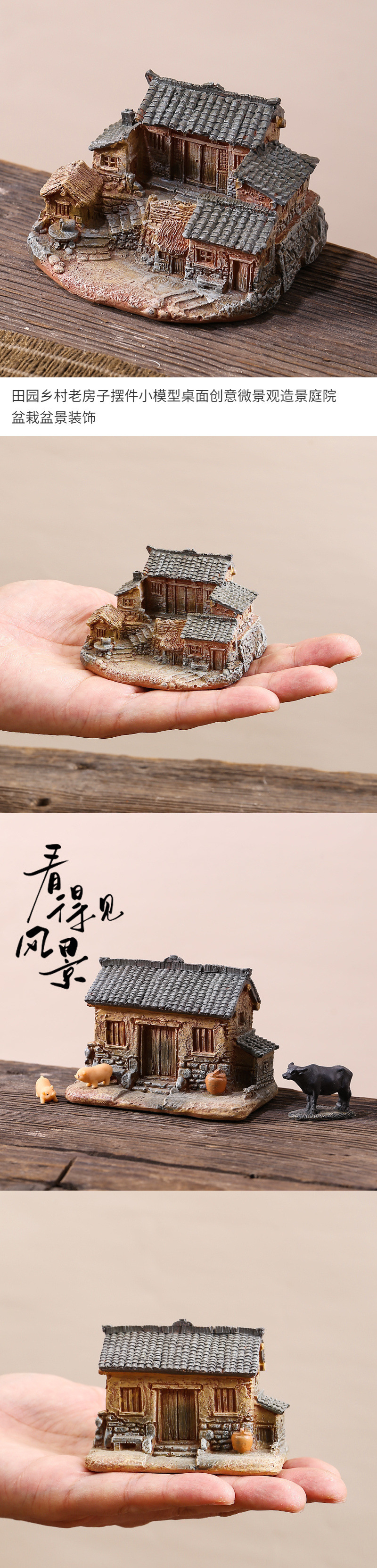 목가적이고 시골의 오래된 집 장식품, 작은 모델, 데스크탑 창의적인 마이크로 조경, 안뜰 화분, 분재 장식스토어 가기