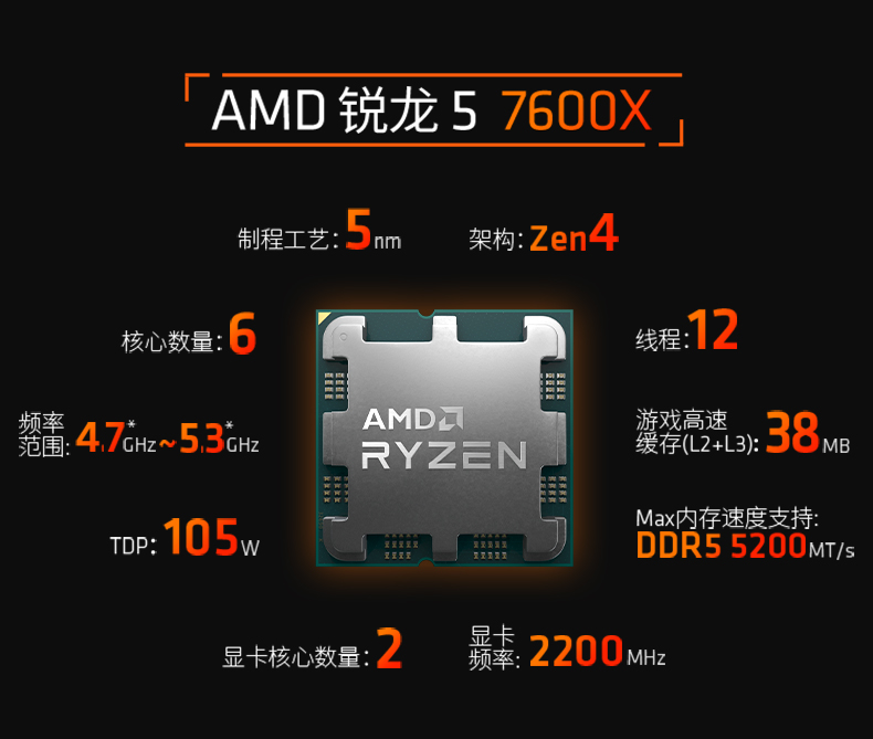 AMD Ryzen 5 7600X 프로세서 5nm 6코어 12스레드 4.7GHz 105W AM5 인터페이스 박스형 CPU스토어 가기