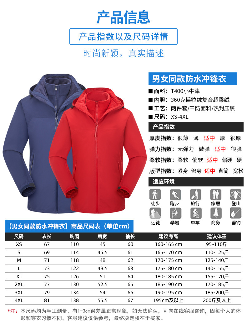 제조업체는 남성용 및 여성용 탈착식 등산 작업복 프린트가 있는 새로운 국가 표준 재킷 3-in-1 0.05kg 피스 세트를 도매로 맞춤 설정할 수 있습니다.스토어 가기