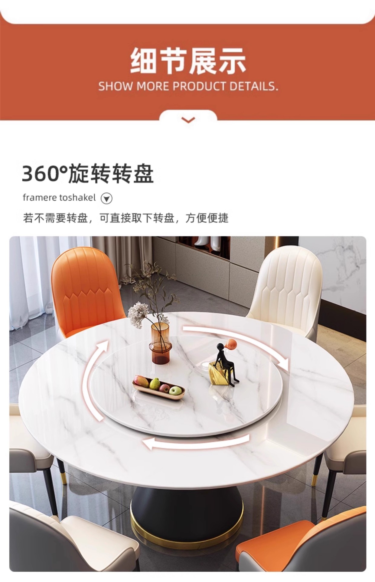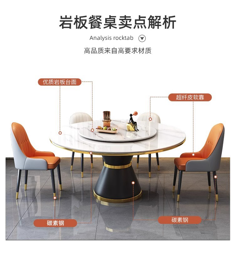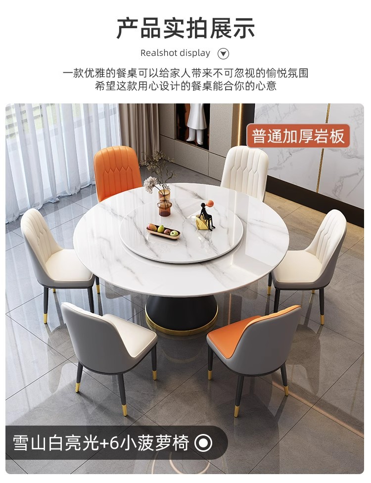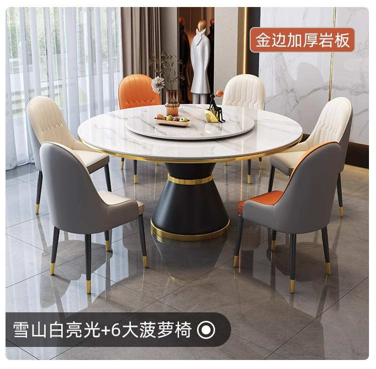 현대적인 라운드 슬레이트 식탁과 의자 2025 새로운 가벼운 럭셔리 라운드 테이블 가정용 다인 식당 상업용 호텔 식탁스토어 가기