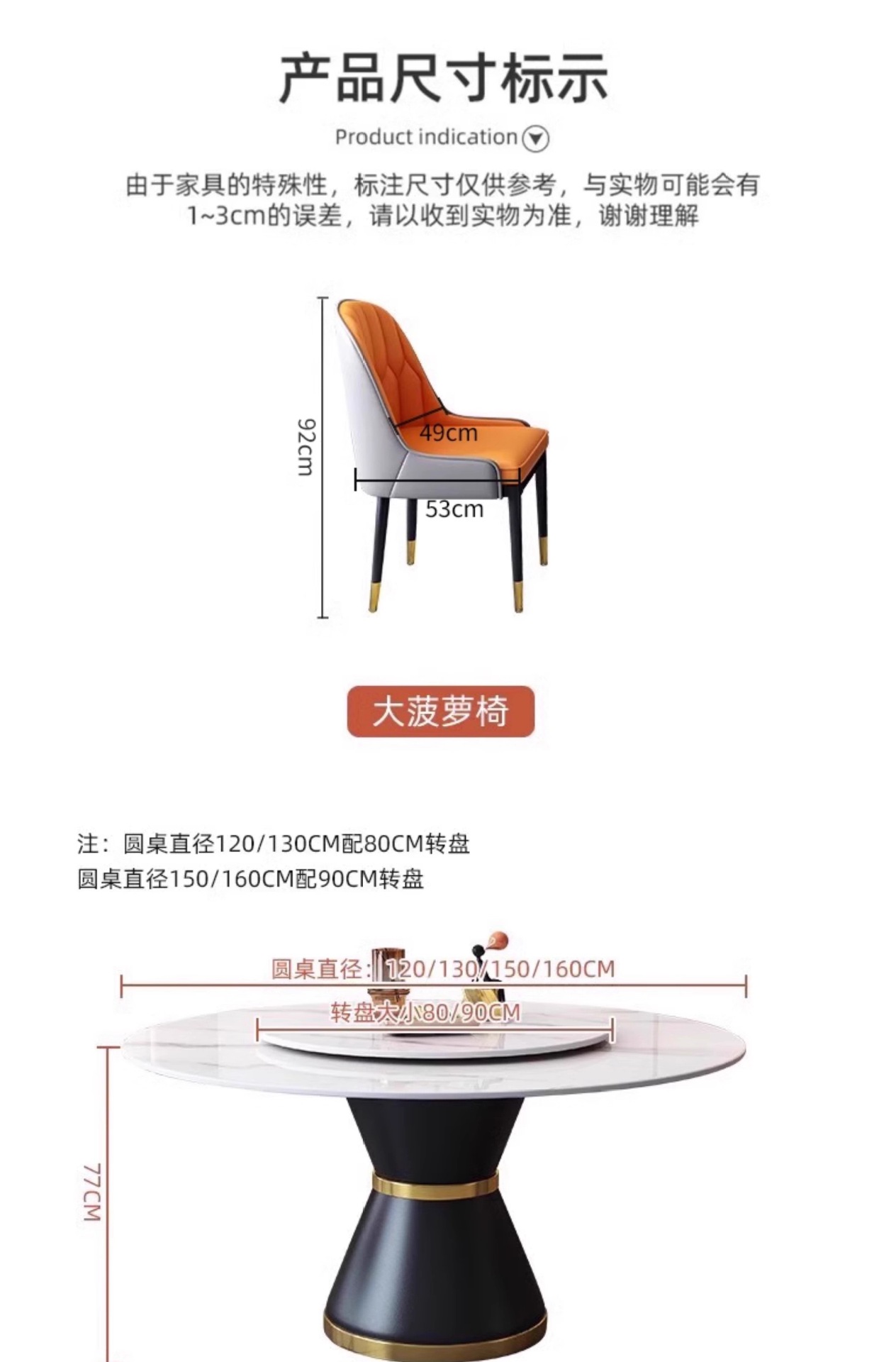 • [슬레이트 모델] 원형 테이블 1.5m개 + 대형 파인애플 의자 8개 - 무료 턴테이블