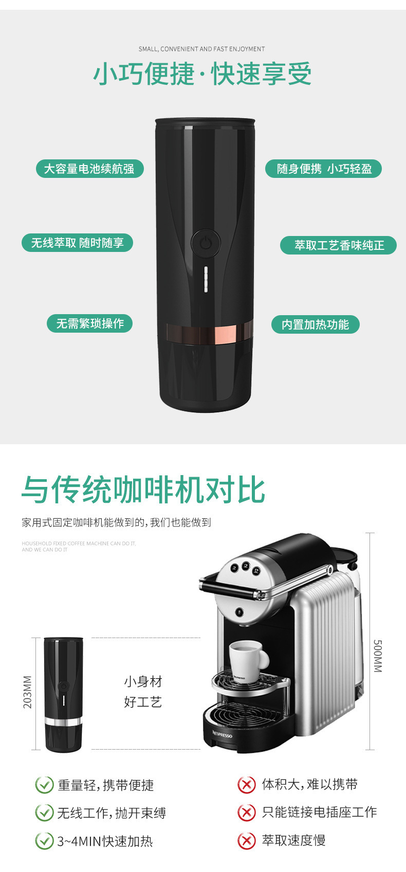 이탈리아 스타일 가열식 이중 목적 커피 머신 무선 추출 야외 휴대용 캡슐 커피 머신 도매
