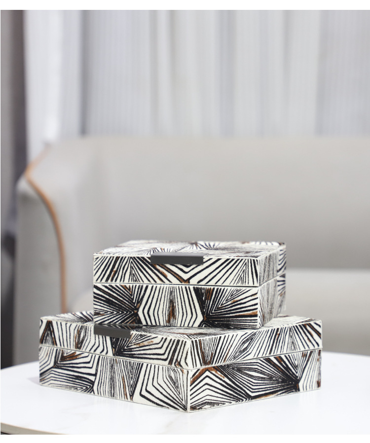 현대 간단한 흑백 줄무늬 보석 보관 상자 장식 상자 장식품 드레싱 테이블 TV 캐비닛 부드러운 가정용 액세서리