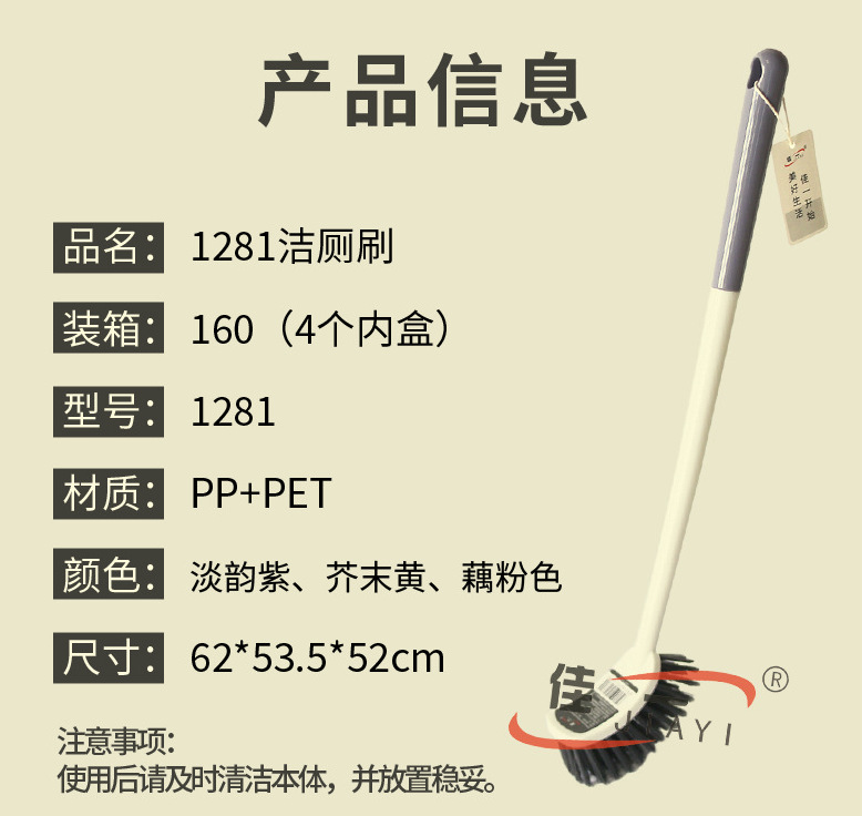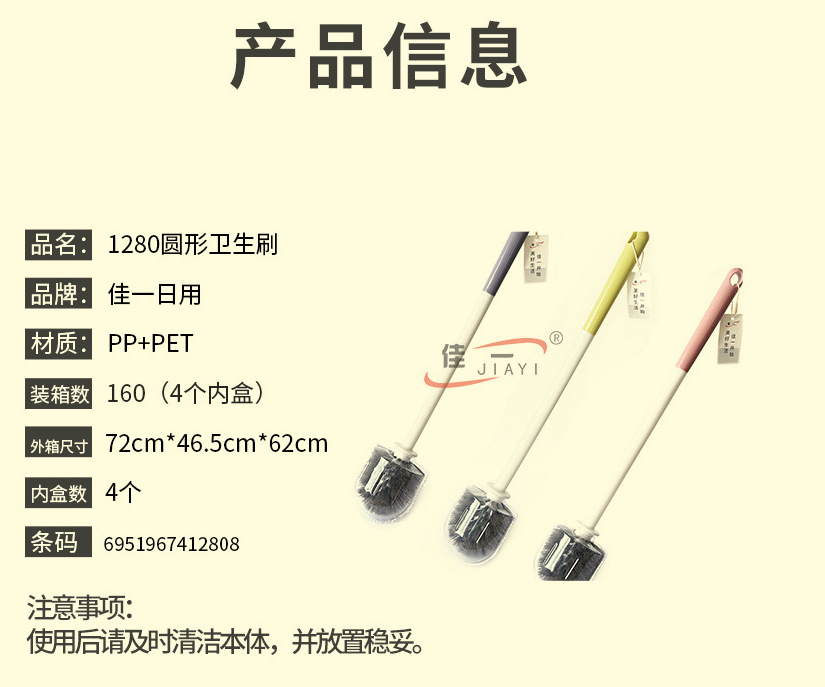 Jiayi 1280 긴 손잡이 위생 브러시 버블 쉘 포장 변기 브러시 플라스틱 손잡이 두꺼운 둥근 머리 변기 브러시 사각형 머리 변기 브러시스토어 가기