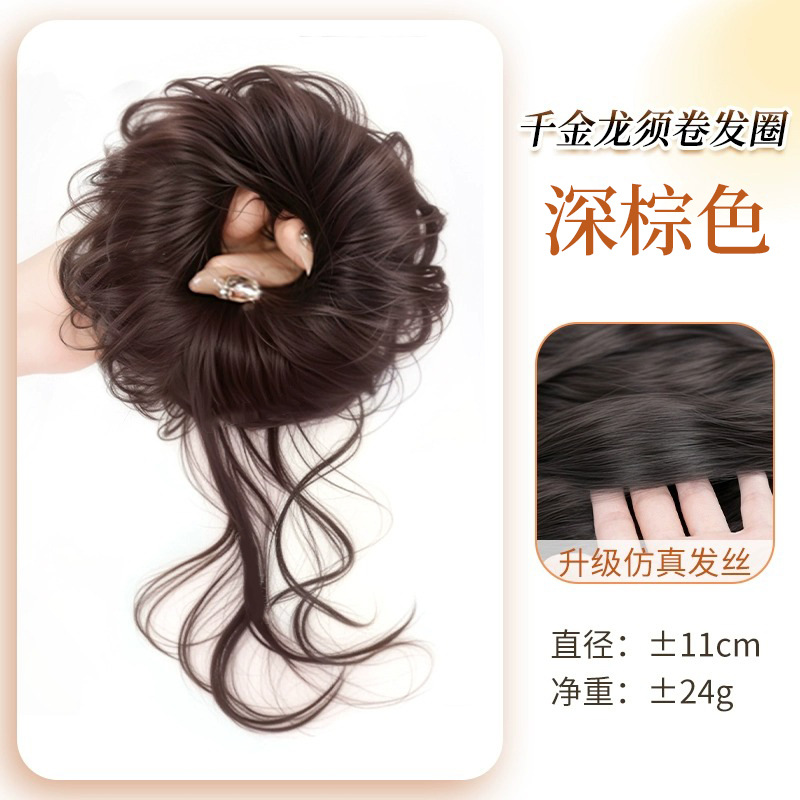 여성용 라운드 헤어피스, 레이지 스타일, 고무줄 머리끈, 드래곤 수염 헤어 액세서리, 자연스럽고 풍성한 헤어 액세서리, 드래곤 수염 컬 머리끈