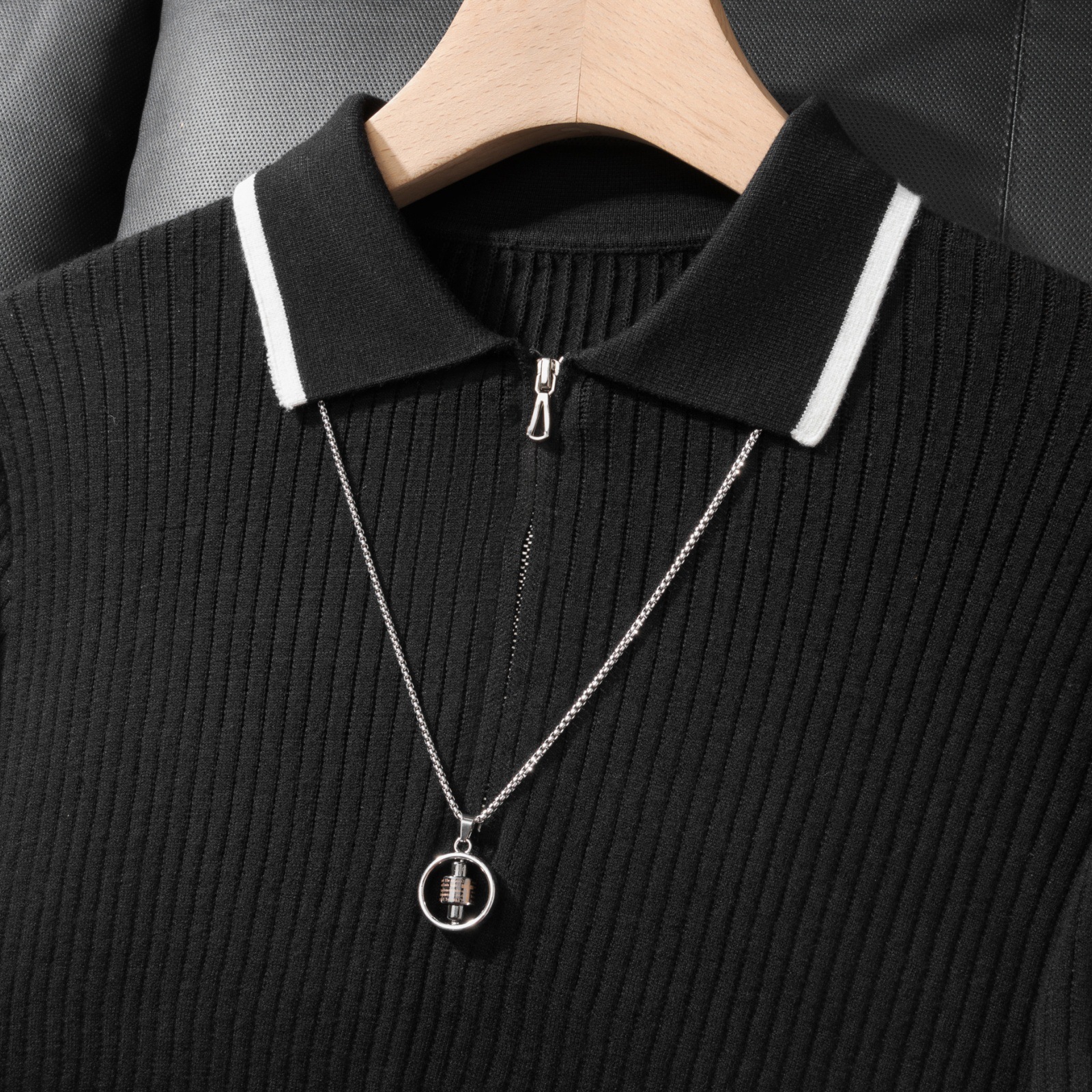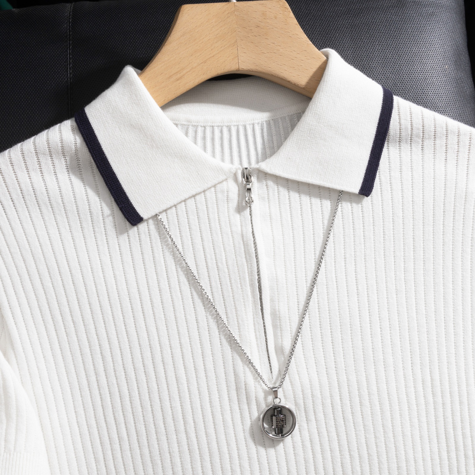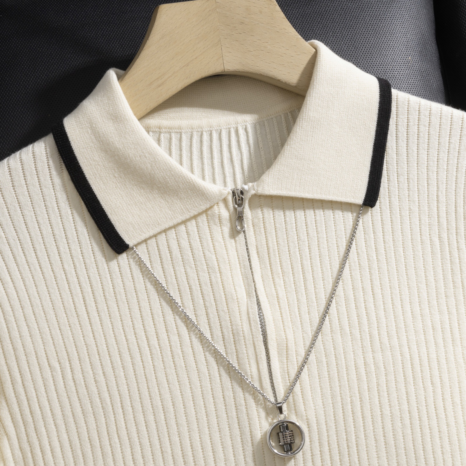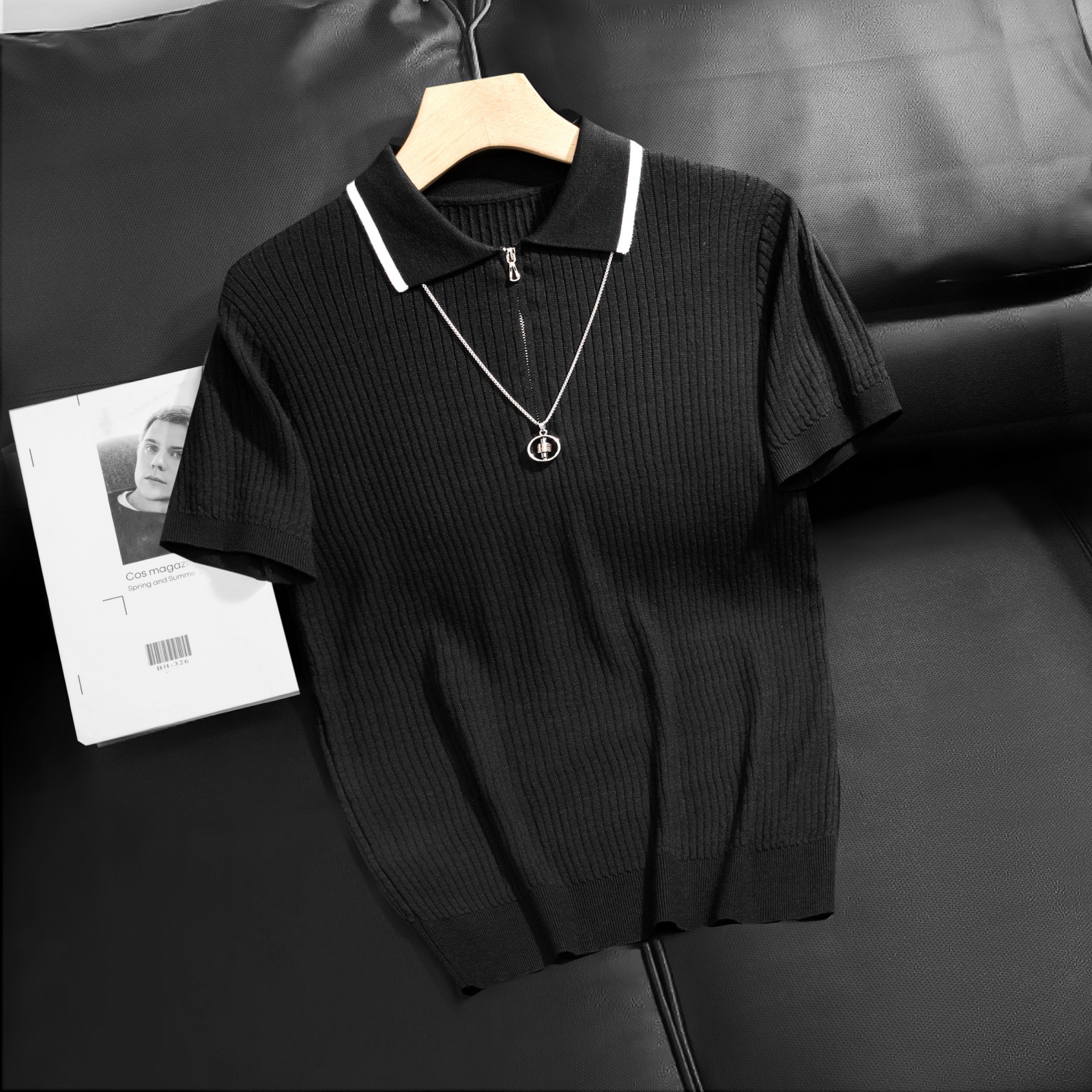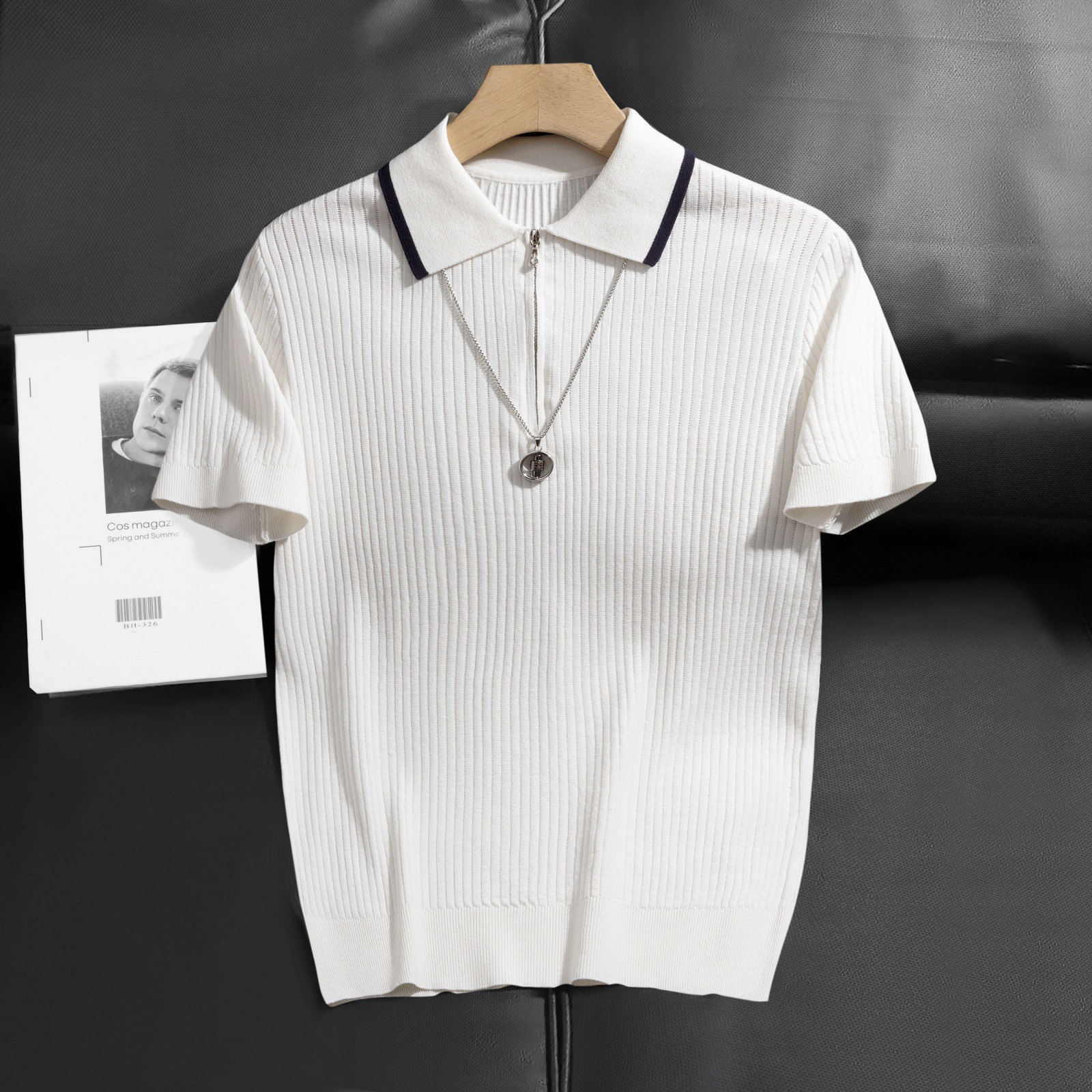 가벼운 럭셔리 지퍼 라펠 다크 스트라이프 얇은 반팔 스웨터 남성 니트웨어 2026 봄 여름 신상품 크로스보더 TK스토어 가기