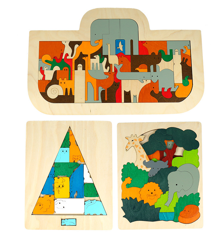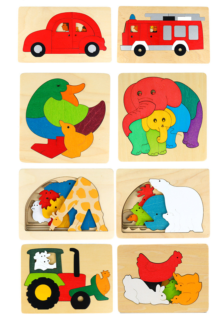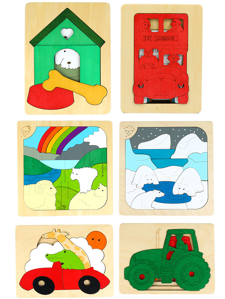 나무 퍼즐 도매 어린이 5 층 동물 만화 퍼즐 장난감 다층 이야기 조기 교육 교육 빌딩 블록 dropshipping스토어 가기