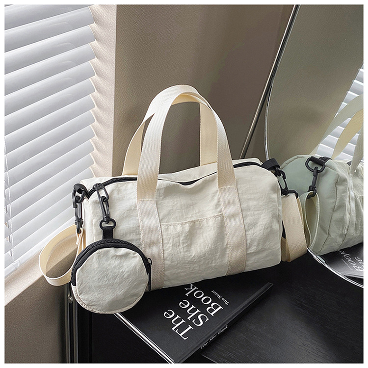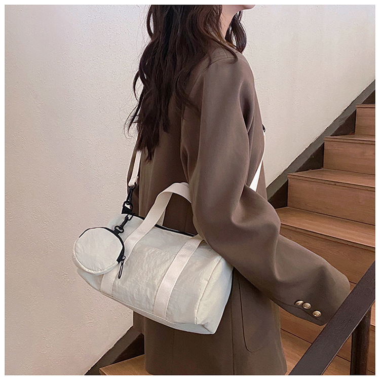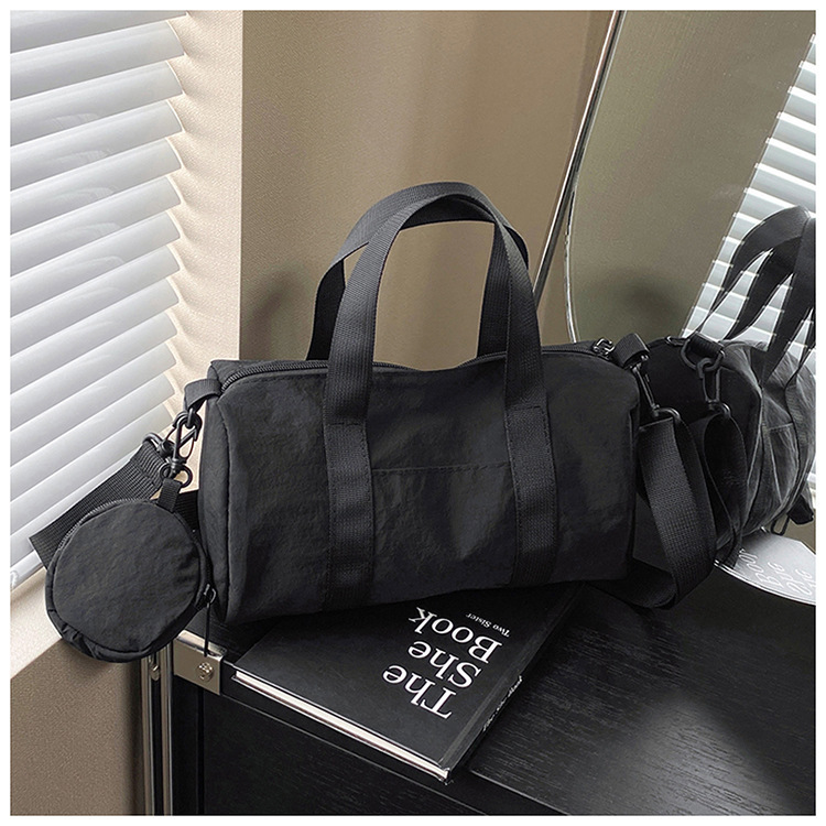 일본과 한국 커플 보스턴 가방 2025 새로운 도착 싱글 어깨 원통형 가방 여자 올매치 대용량 미닛 스타일 크로스 바디 백스토어 가기
