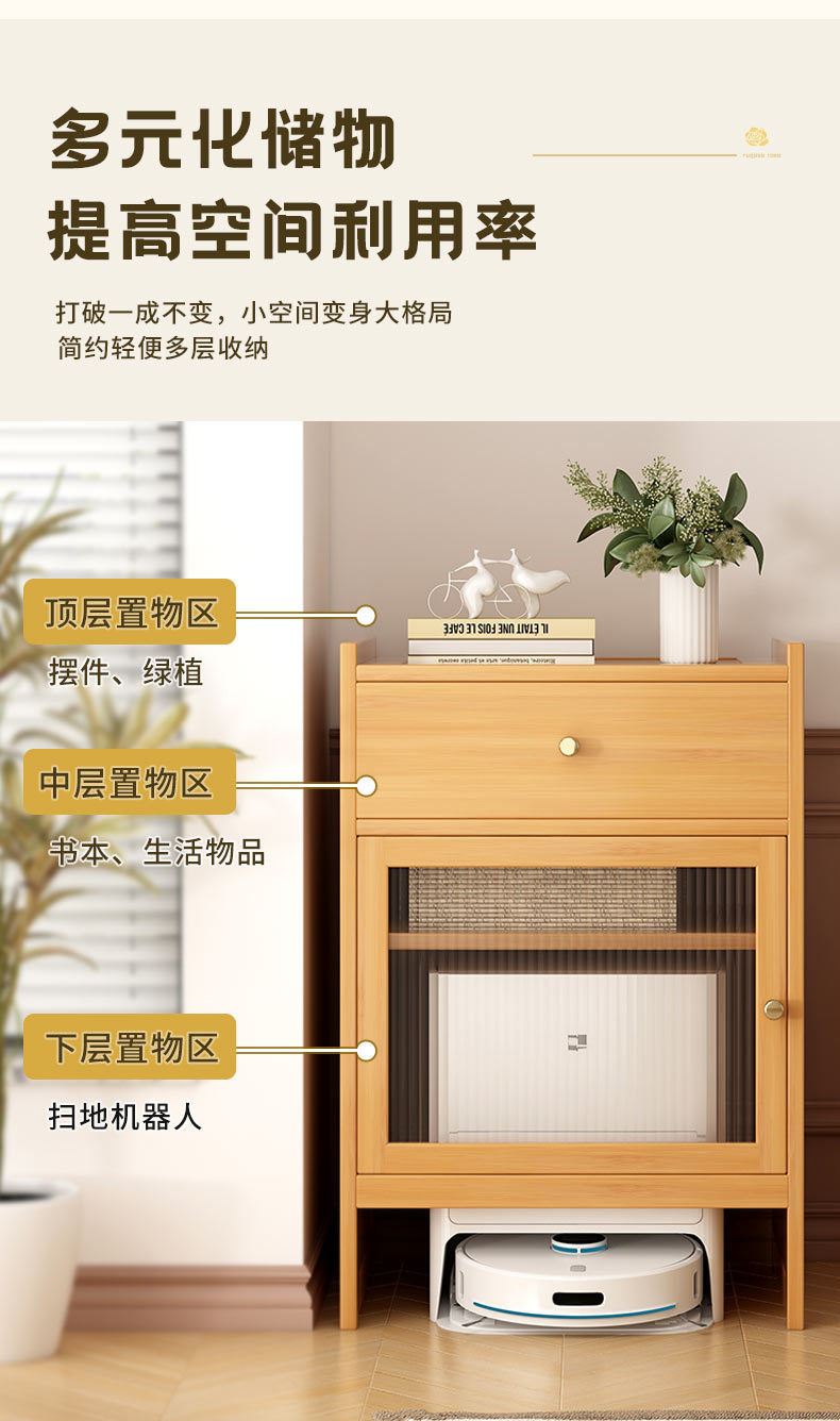 로봇청소기 수납선반, 거실 공간 활용 유물, 다기능 TV 캐비닛 옆 정수기, 화분 꽃꽂이스토어 가기