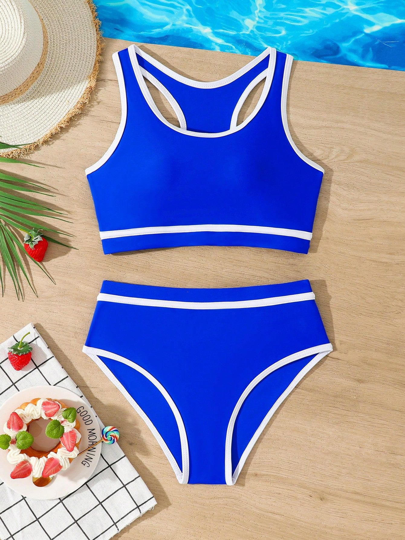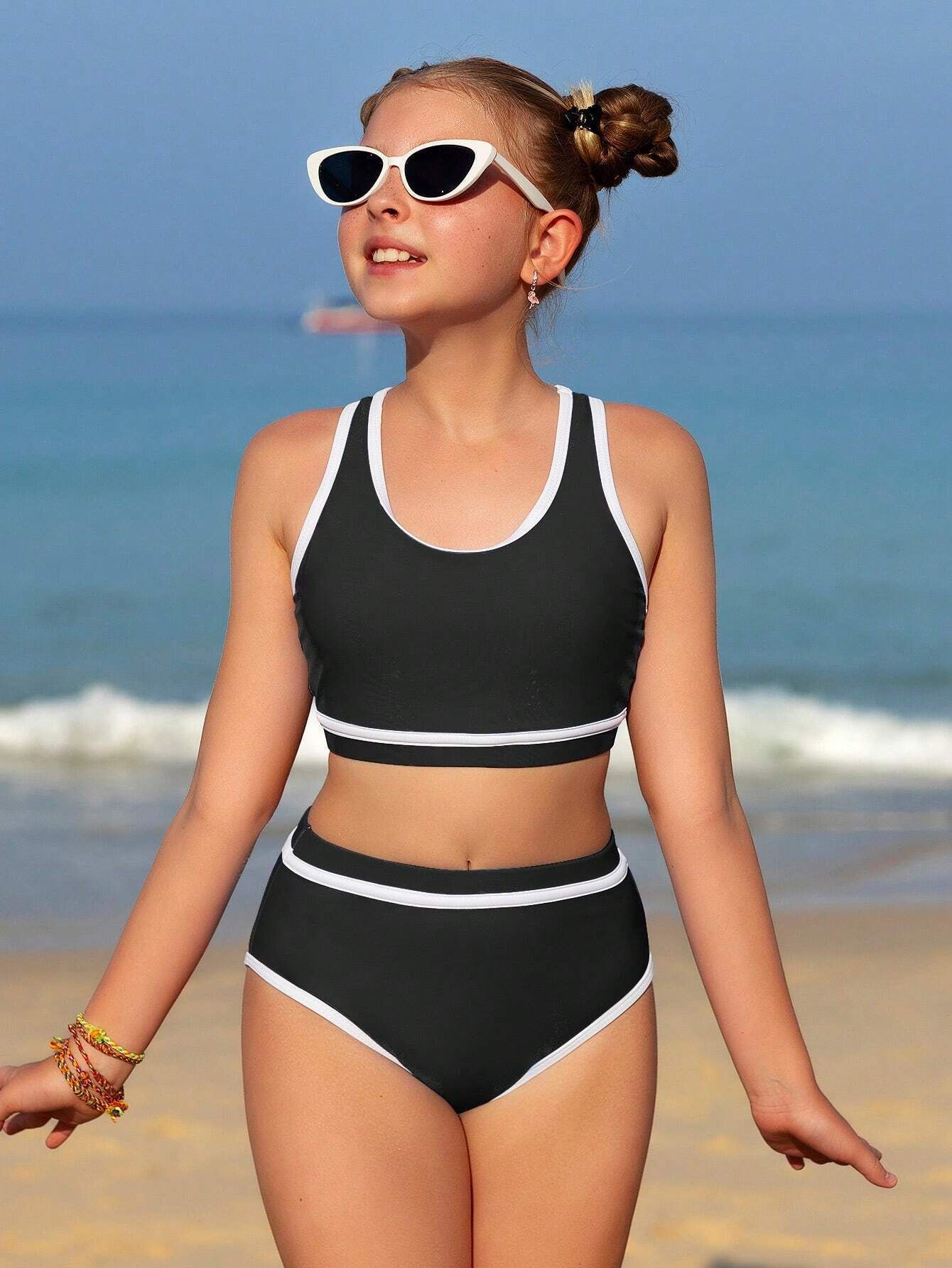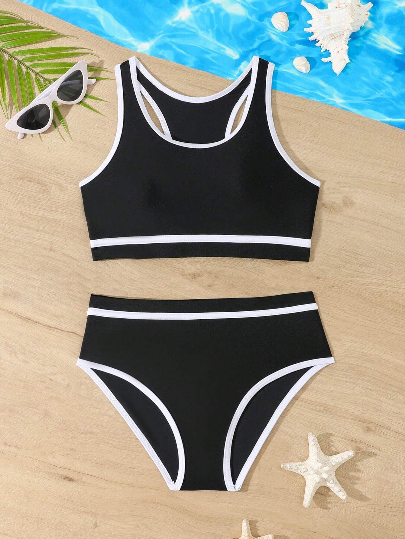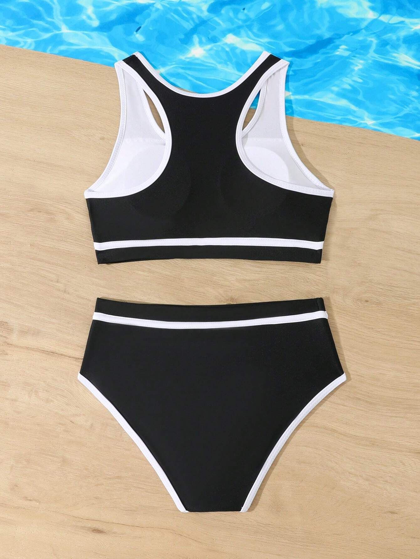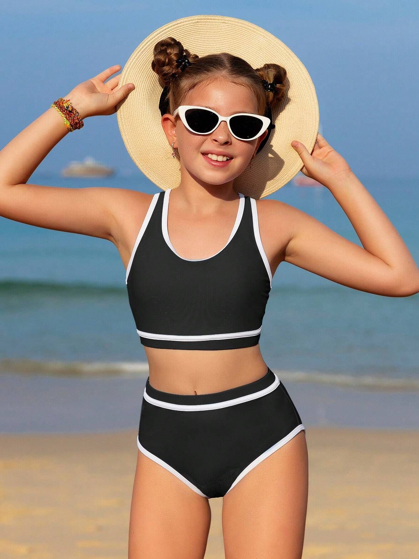 2025 유럽과 미국의 대외 무역 크로스보더 소녀 수영복 여성 스플릿 비키니 솔리드 컬러 아마존 스팟스토어 가기