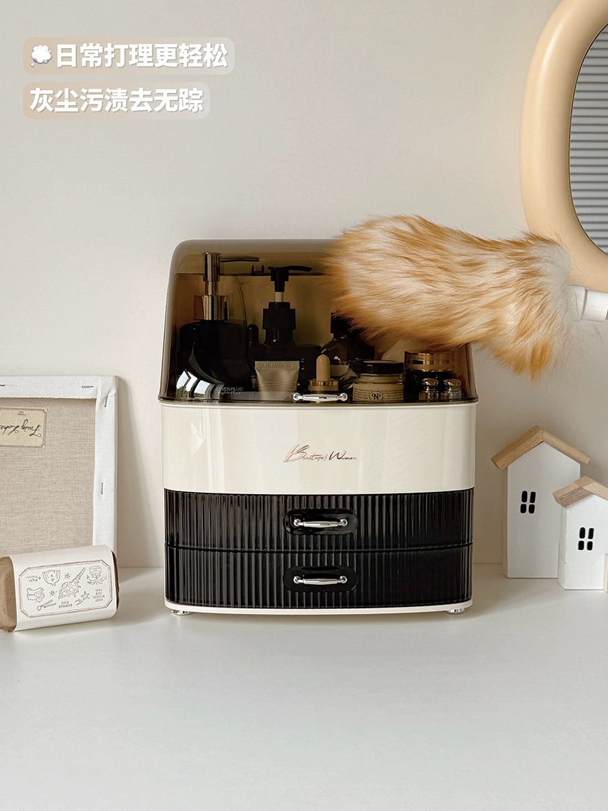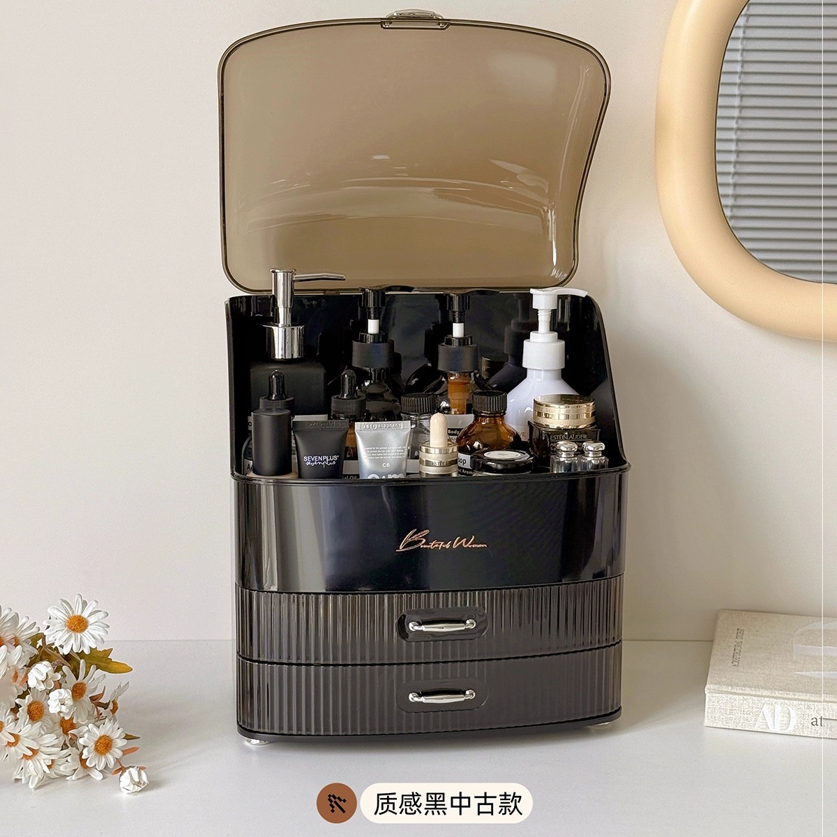 • 질감 있는 블랙 중세풍 [방진 서랍형 메이크업 수납함]