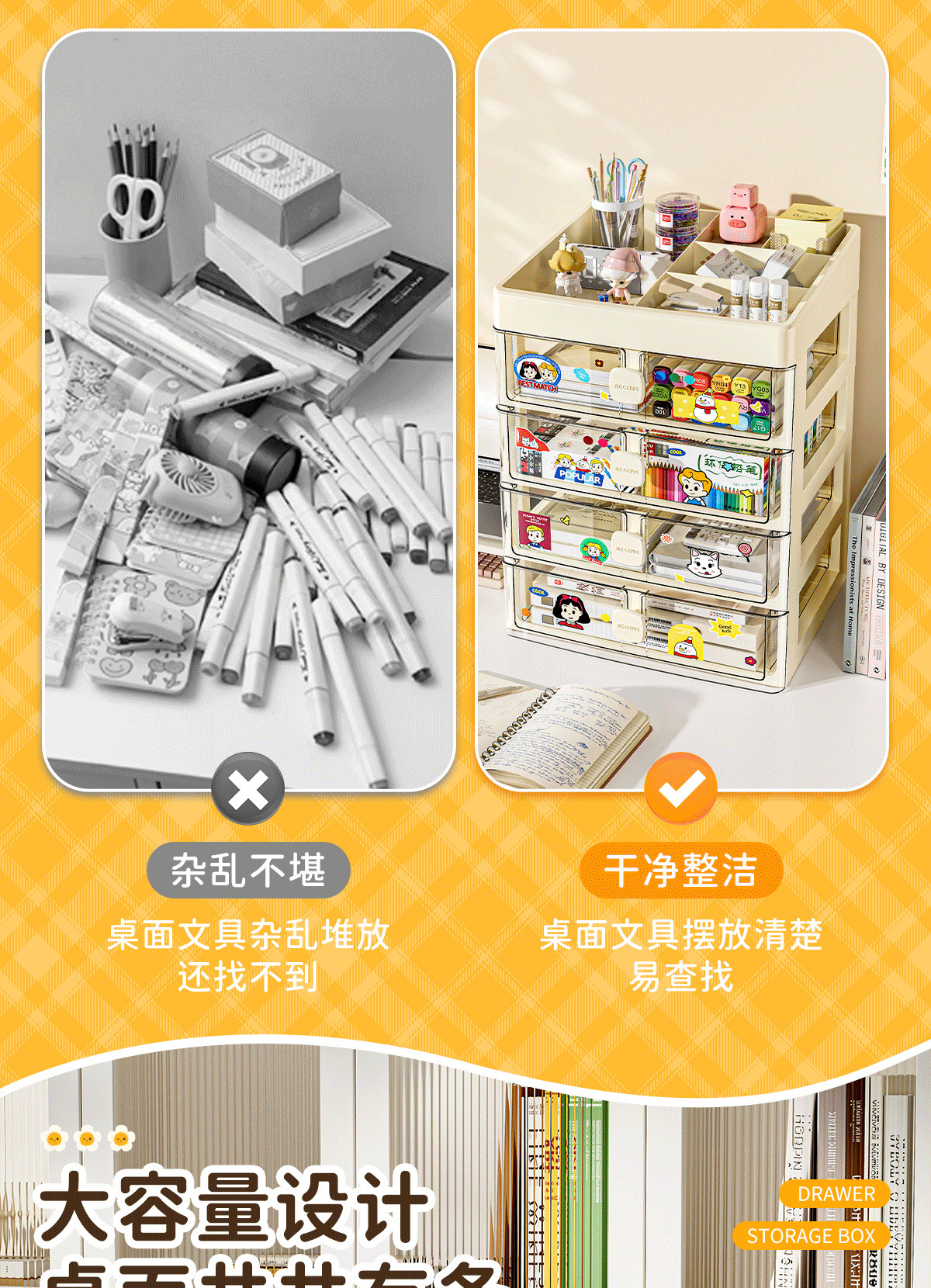 서랍형 데스크탑 보관함 사무실 책상 정리함 다층 두꺼운 대용량 방진 보관함 도매스토어 가기