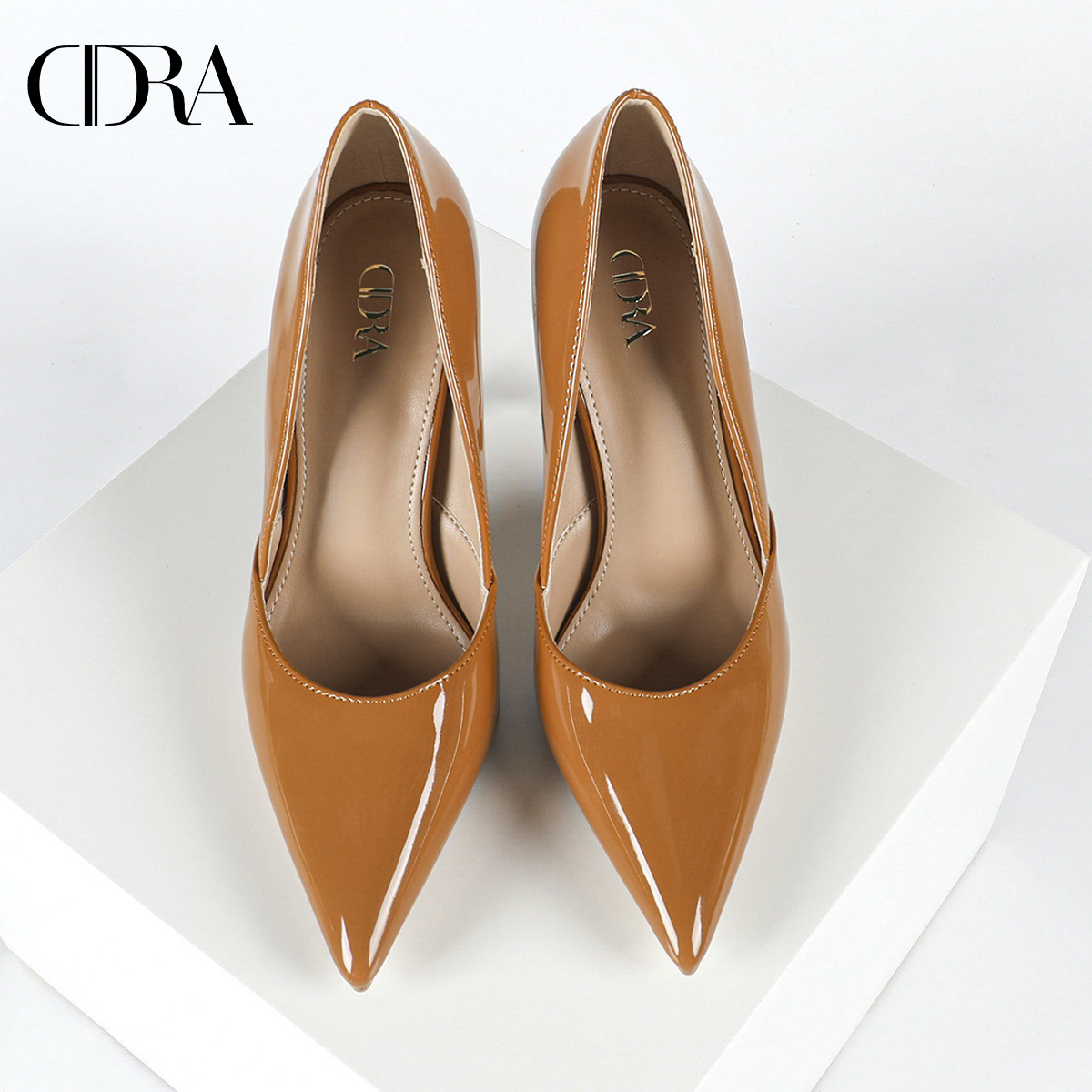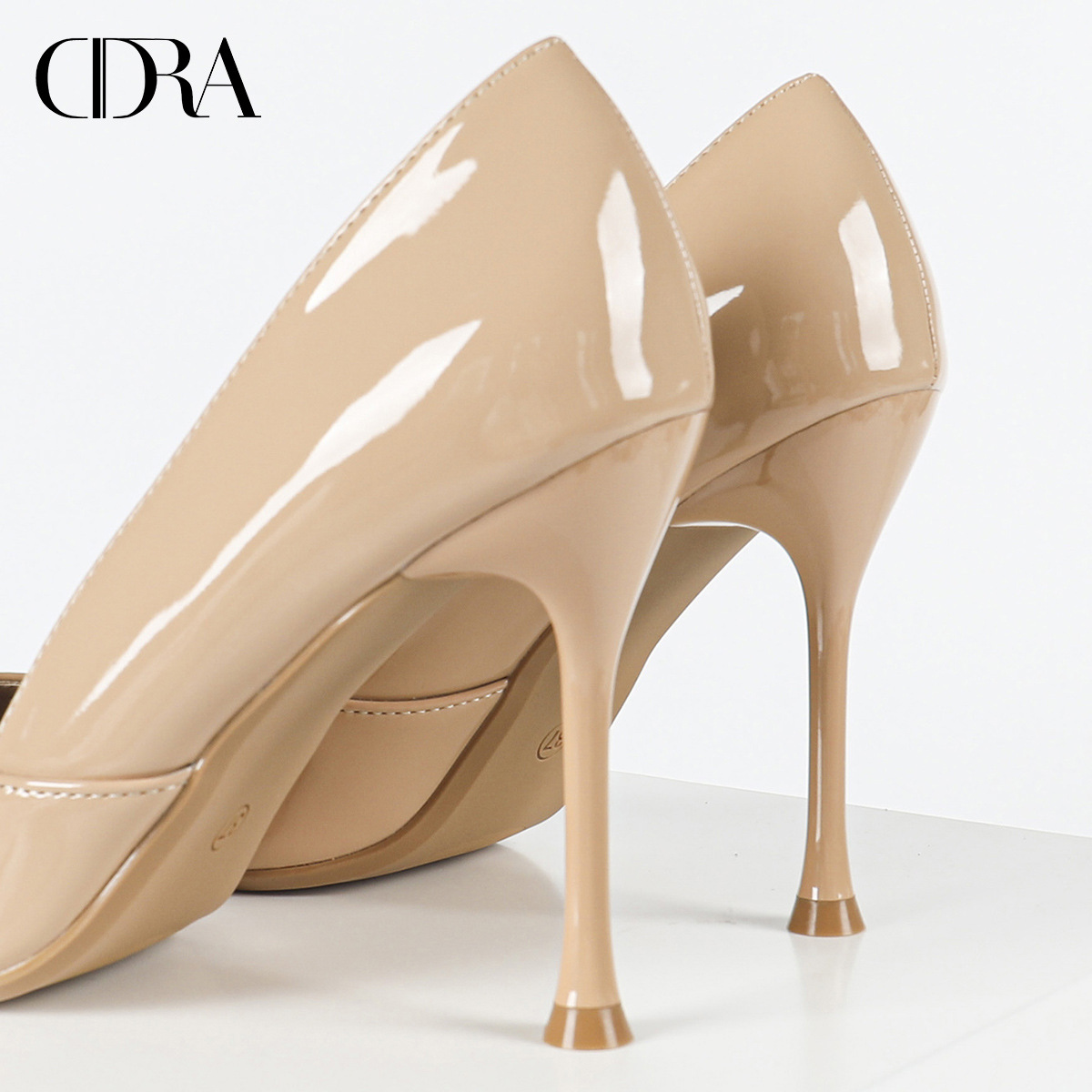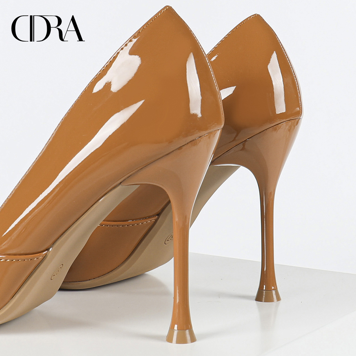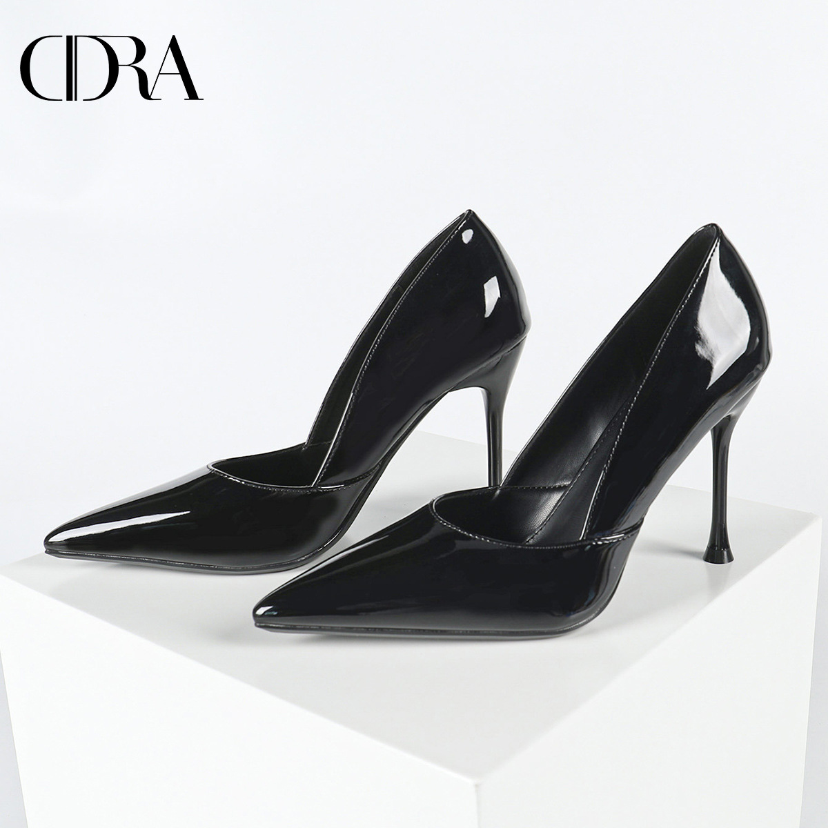 유럽과 미국 스타일의 패셔너블하고 심플한 스틸레토 슈퍼 하이힐 광택 페이턴트 가죽 뾰족한 발가락 섹시 슬리밍 여성 싱글 슈즈 하이힐스토어 가기