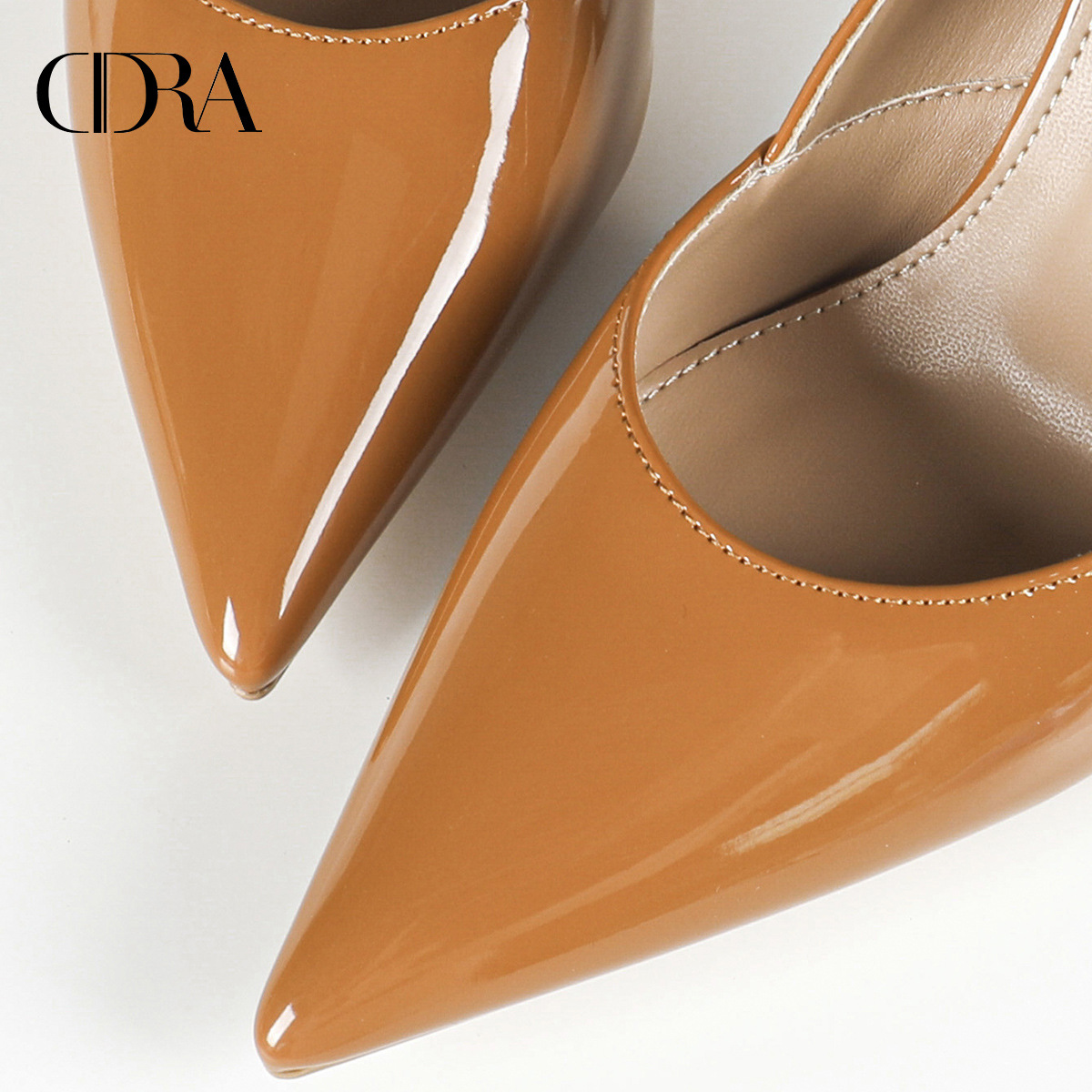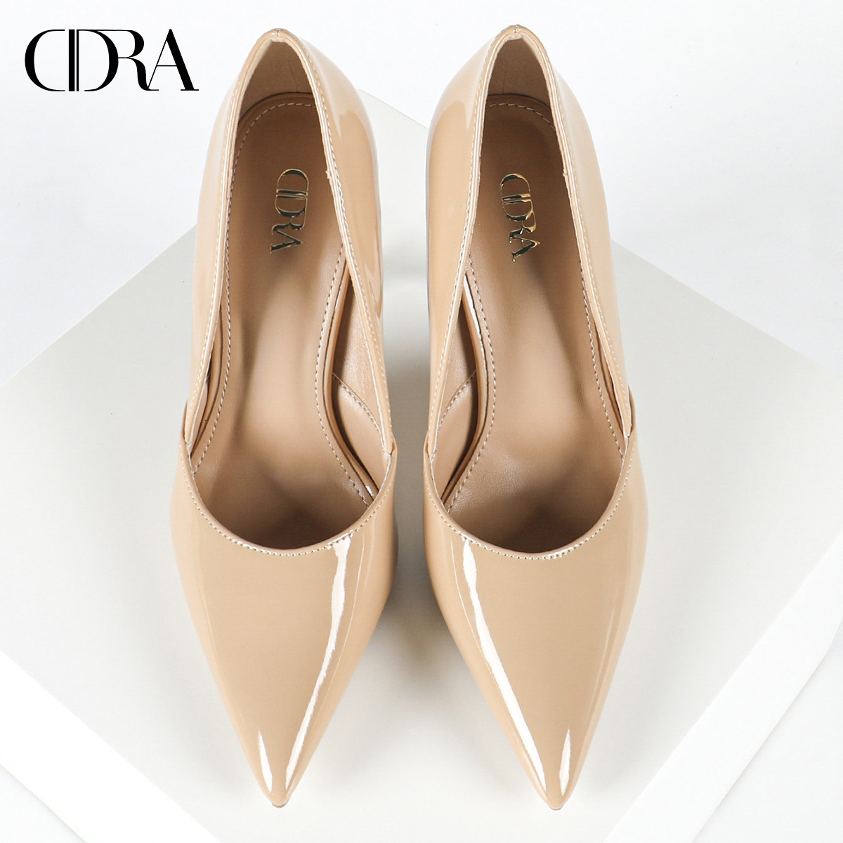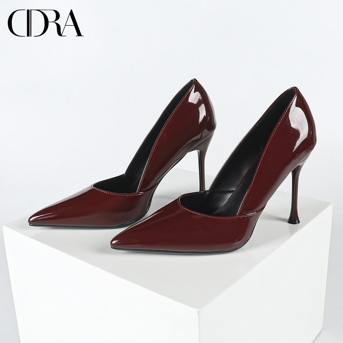 유럽과 미국 스타일의 패셔너블하고 심플한 스틸레토 슈퍼 하이힐 광택 페이턴트 가죽 뾰족한 발가락 섹시 슬리밍 여성 싱글 슈즈 하이힐스토어 가기
