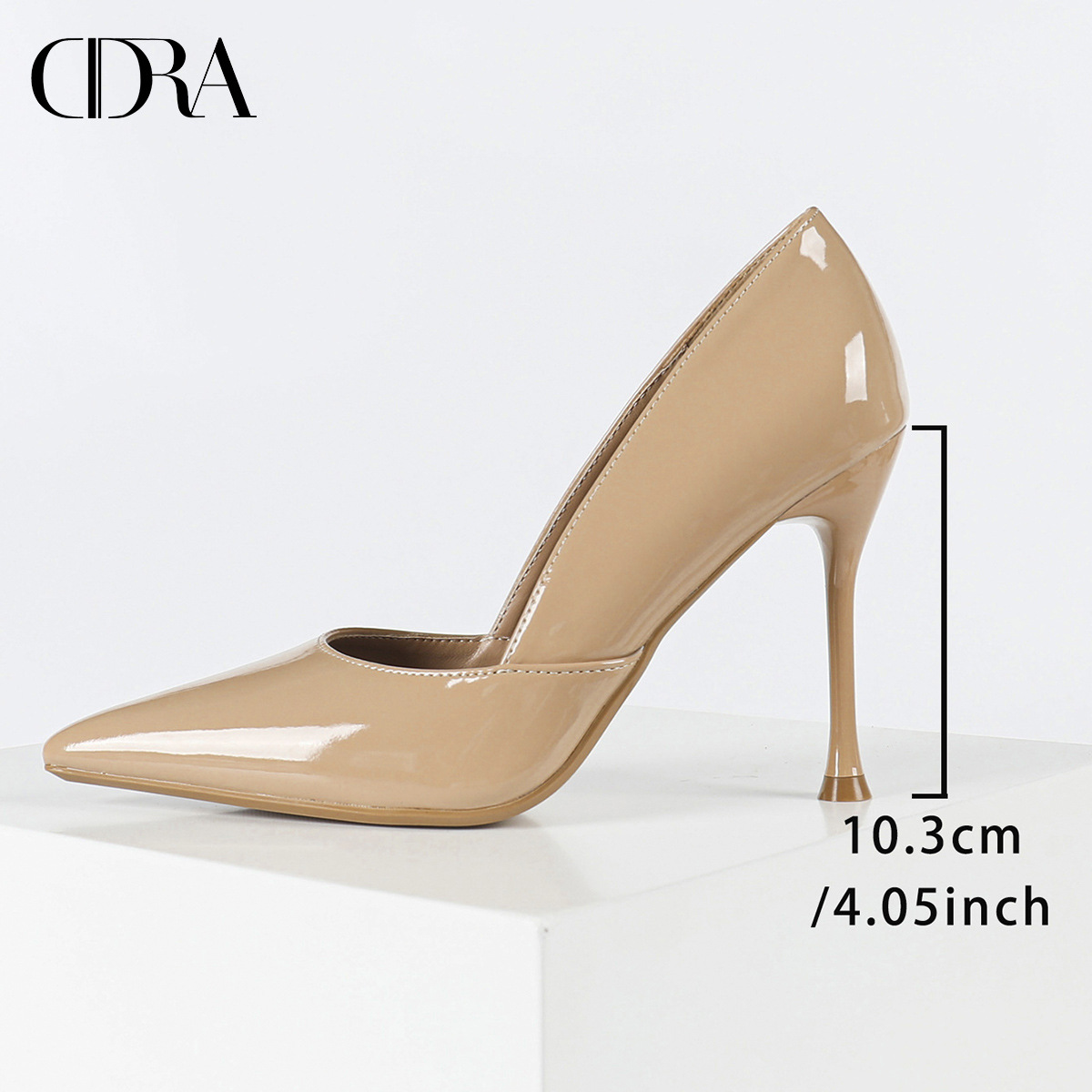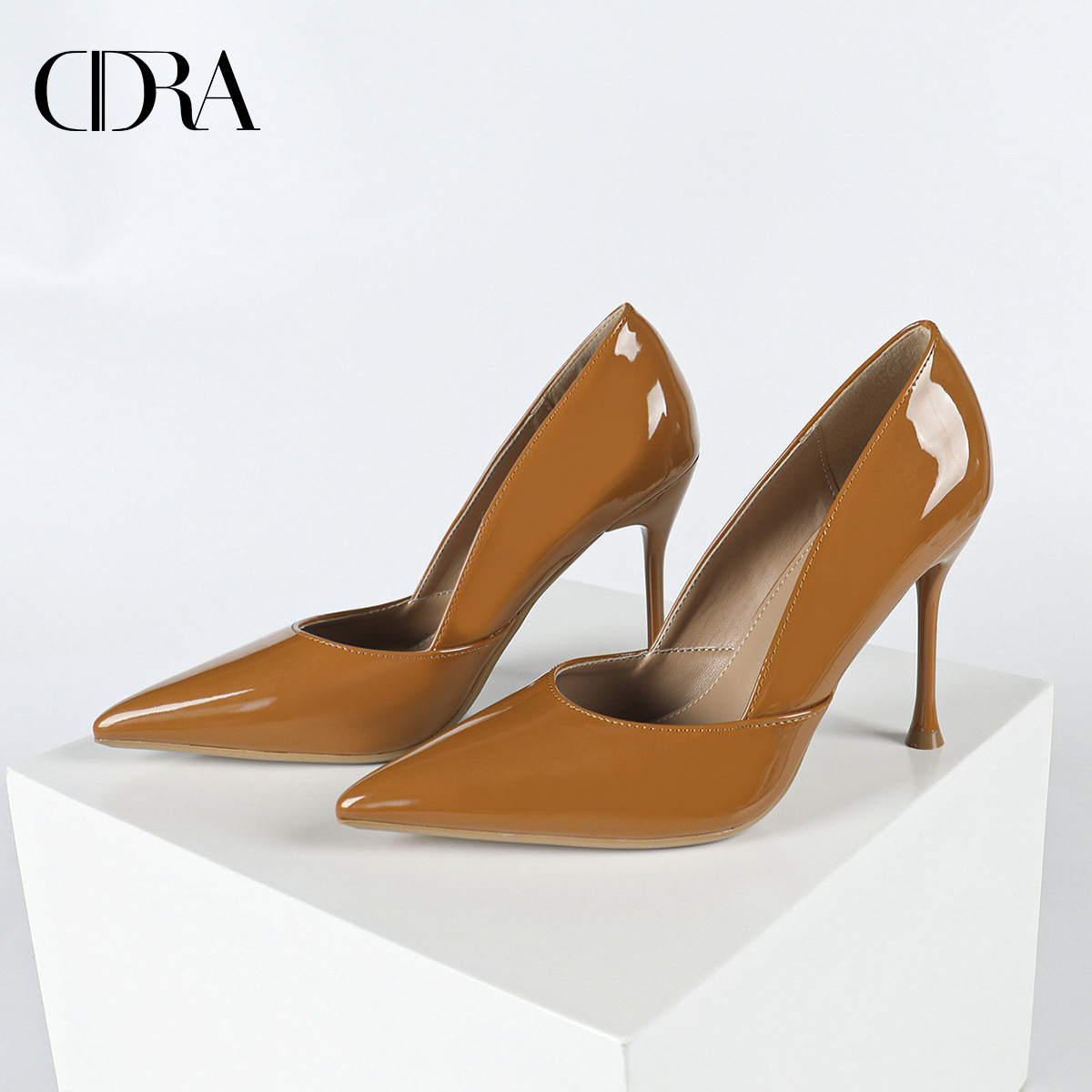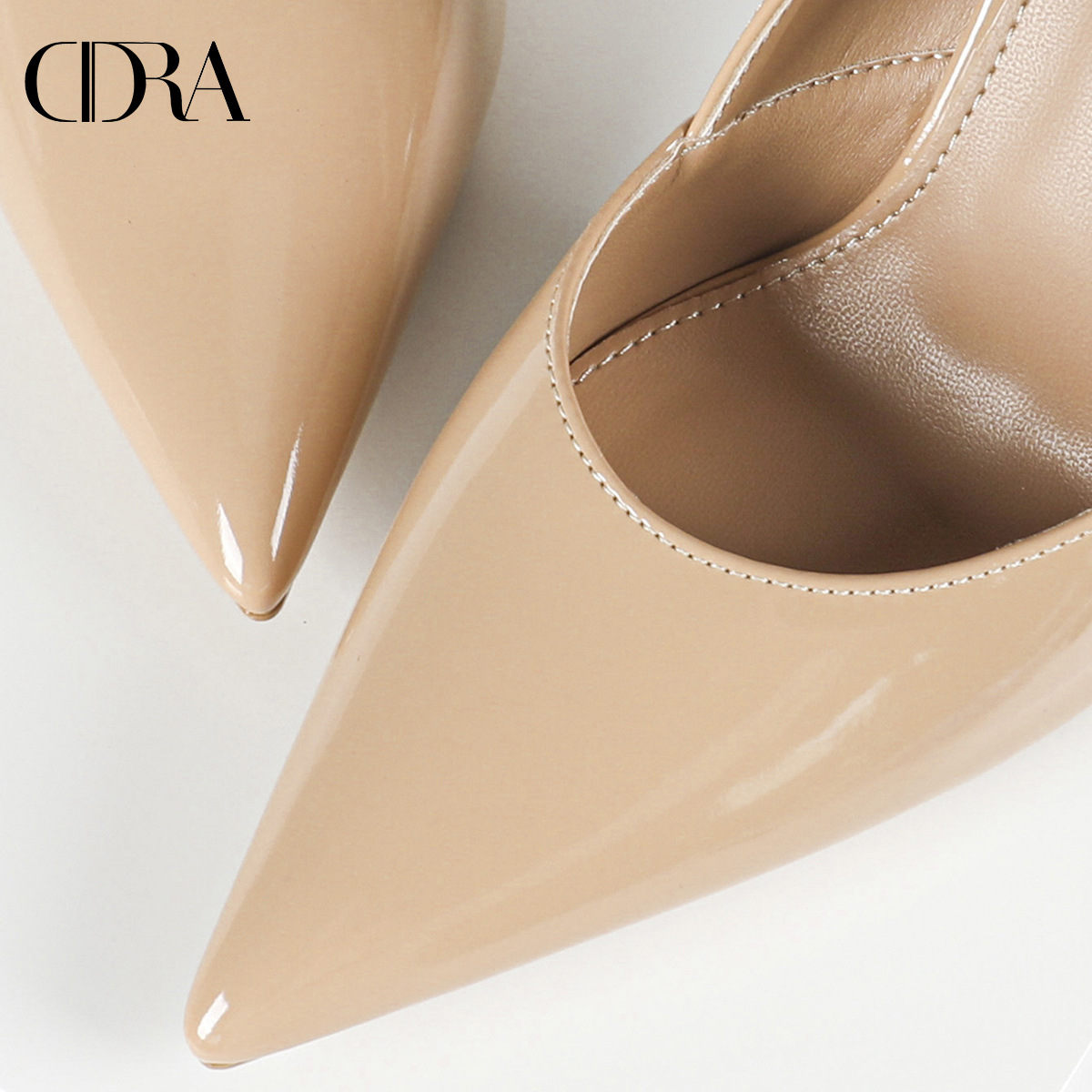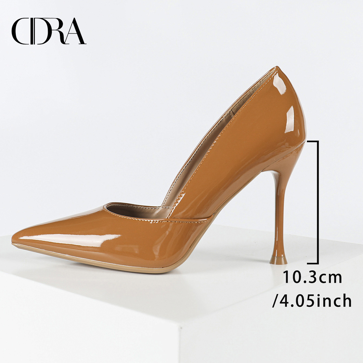 유럽과 미국 스타일의 패셔너블하고 심플한 스틸레토 슈퍼 하이힐 광택 페이턴트 가죽 뾰족한 발가락 섹시 슬리밍 여성 싱글 슈즈 하이힐스토어 가기