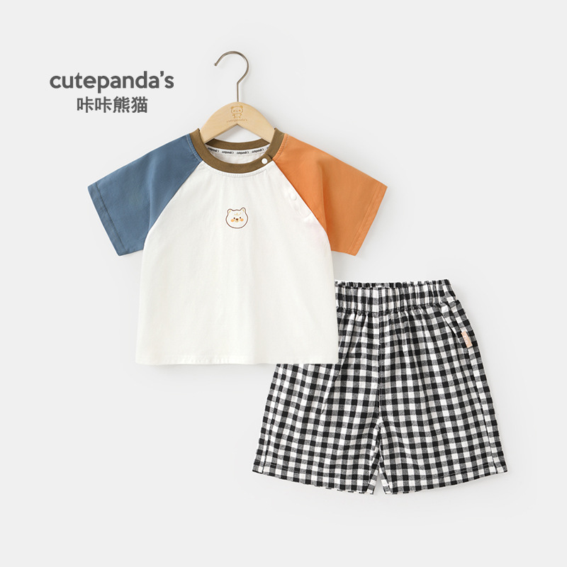 카카 판다 소년 반팔 반바지 투피스 여아 여름 착용 어린이 여름 캐주얼 세트 아기 아동복