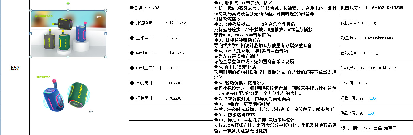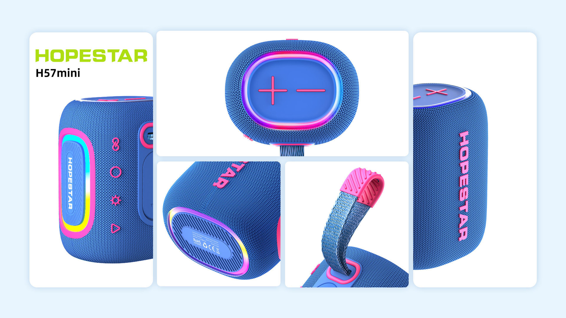HOPESTAR H57mini 휴대용 무선 블루투스 스피커 컬러 라이트 카드 H57 스포츠 오디오스토어 가기