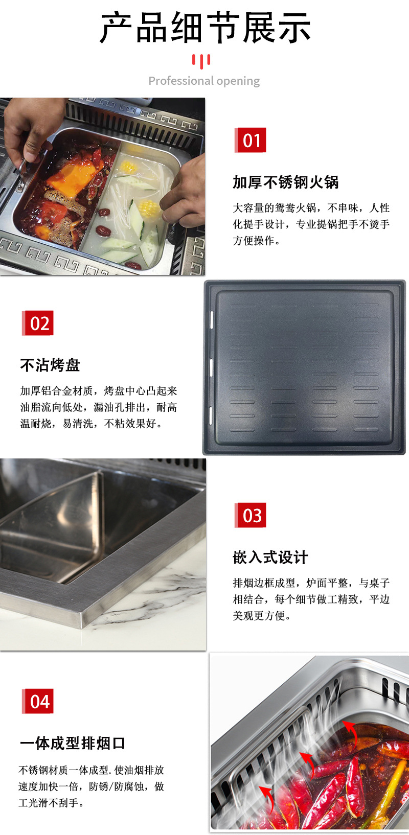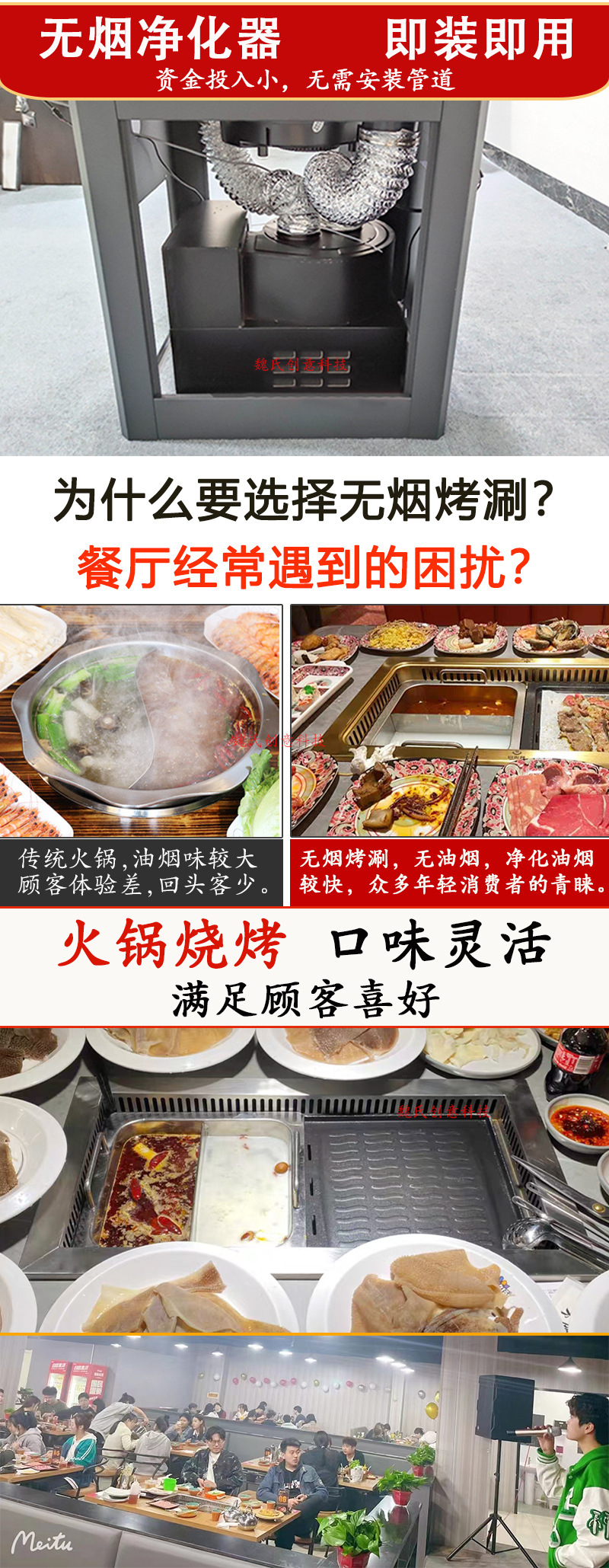 전기 바베큐 그릴 일체형 냄비, 사각형 무연 바베큐 그릴, 정화 기능이 있는 한국식 바베큐, 셀프 서비스 음식점용 구이와 전골스토어 가기