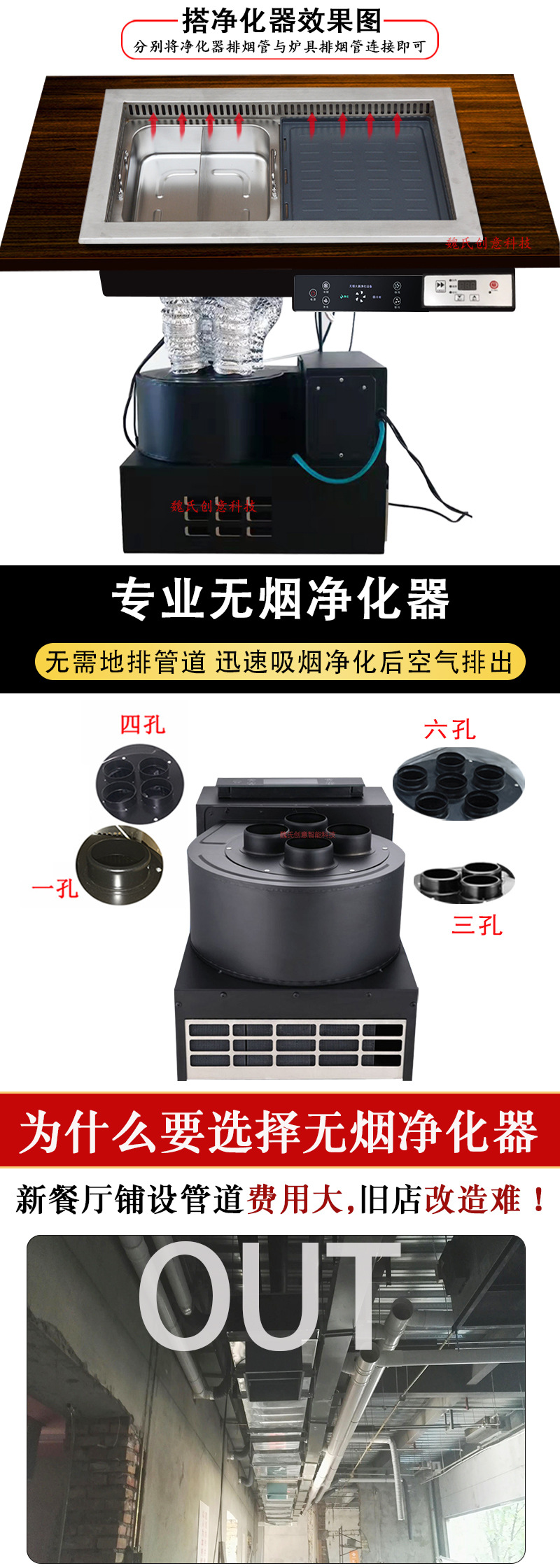 전기 바베큐 그릴 일체형 냄비, 사각형 무연 바베큐 그릴, 정화 기능이 있는 한국식 바베큐, 셀프 서비스 음식점용 구이와 전골