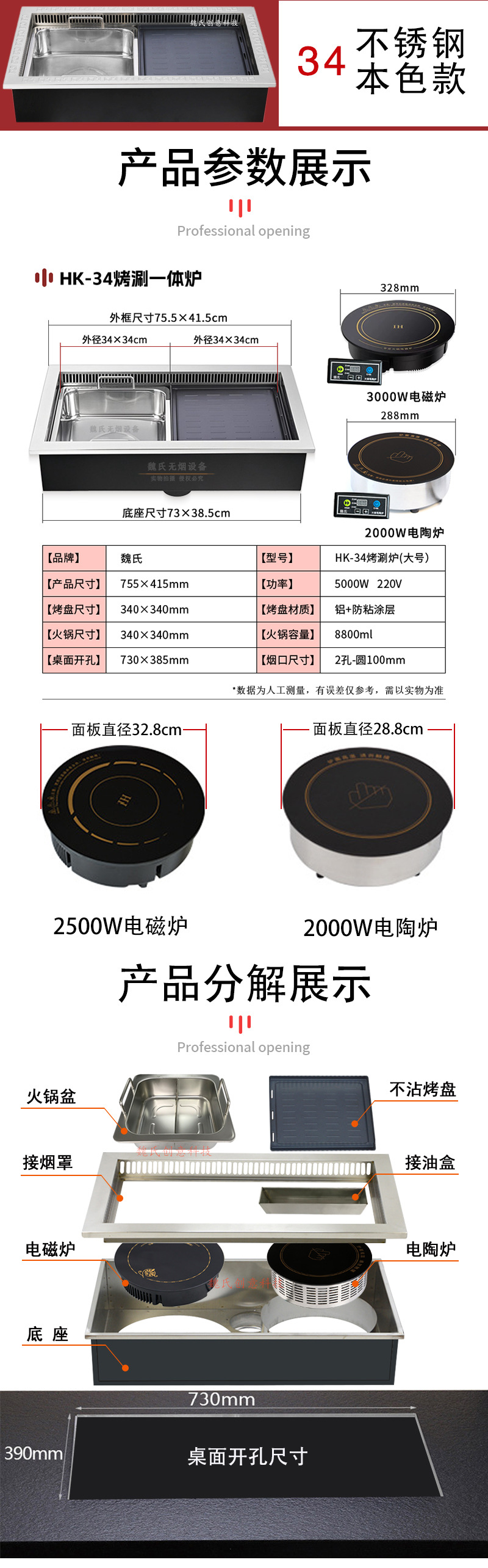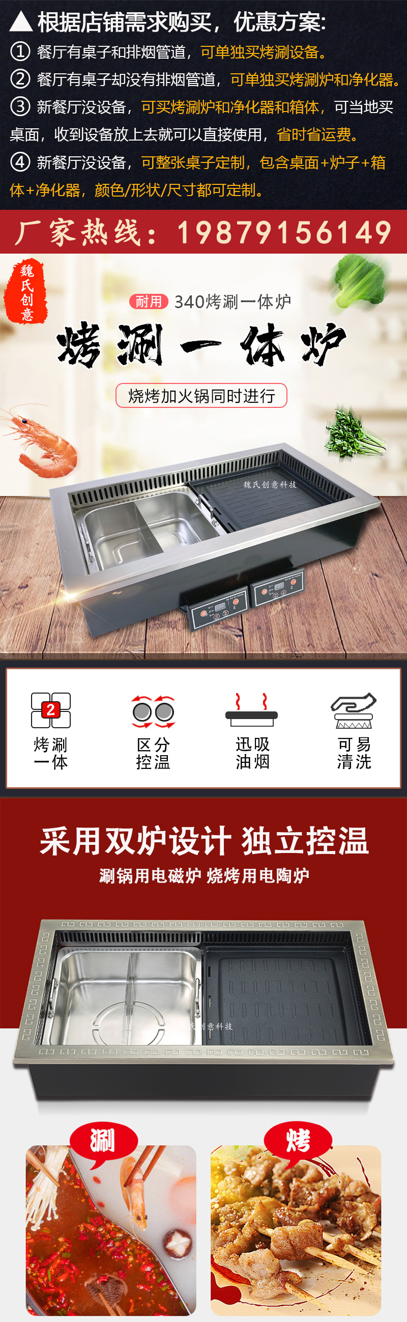 • HK-34 일체형 그릴 및 샤브샤브 스토브(스토브는 포함되지 않음)