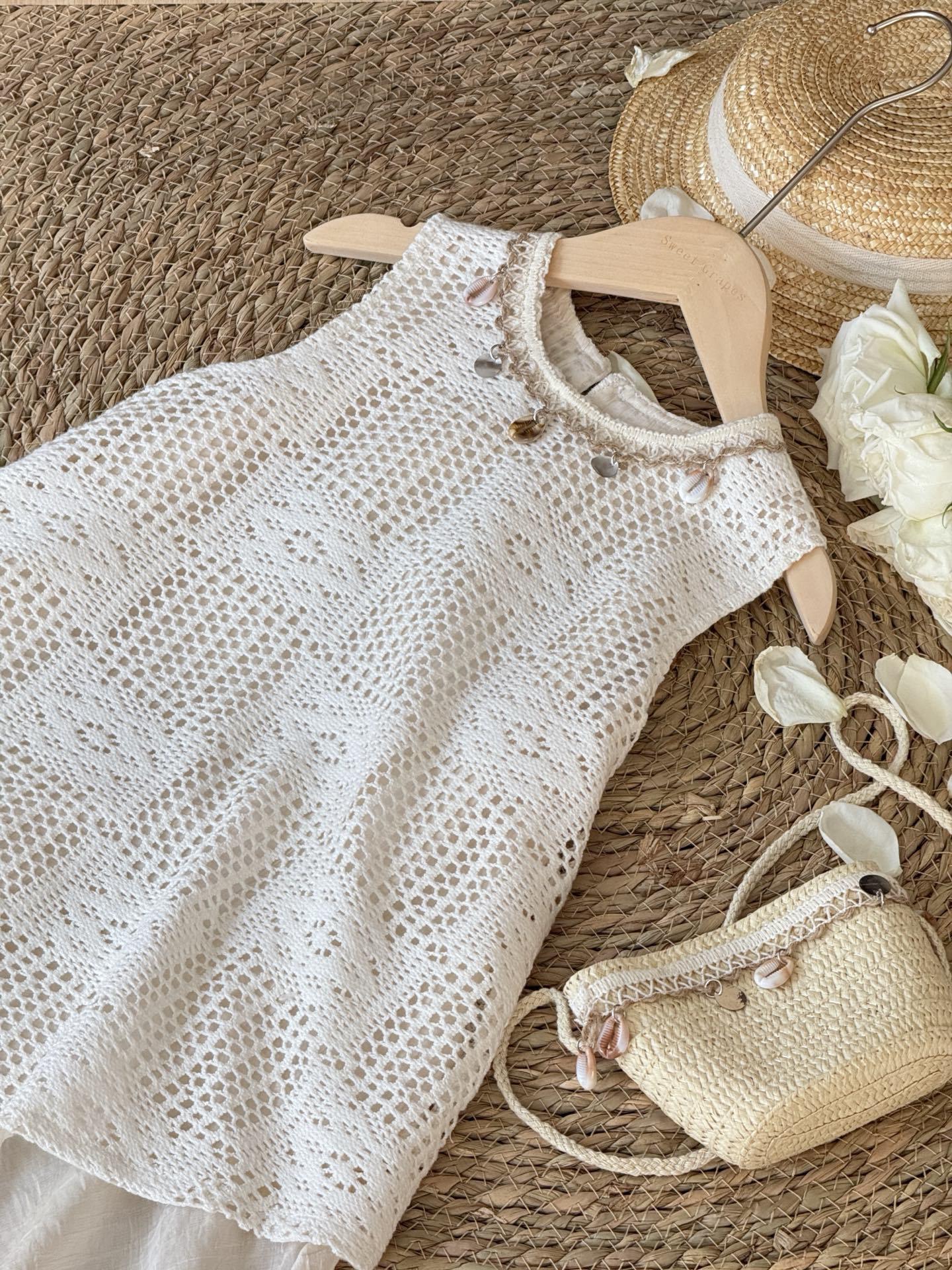 여자 여름 2025 새로운 어린이 조끼 원피스 여름 남부 프랑스 휴일 치마 (가방 보내기)