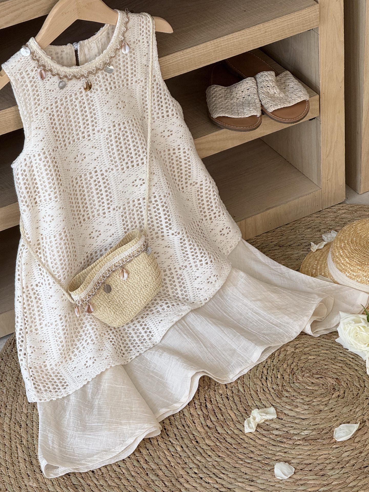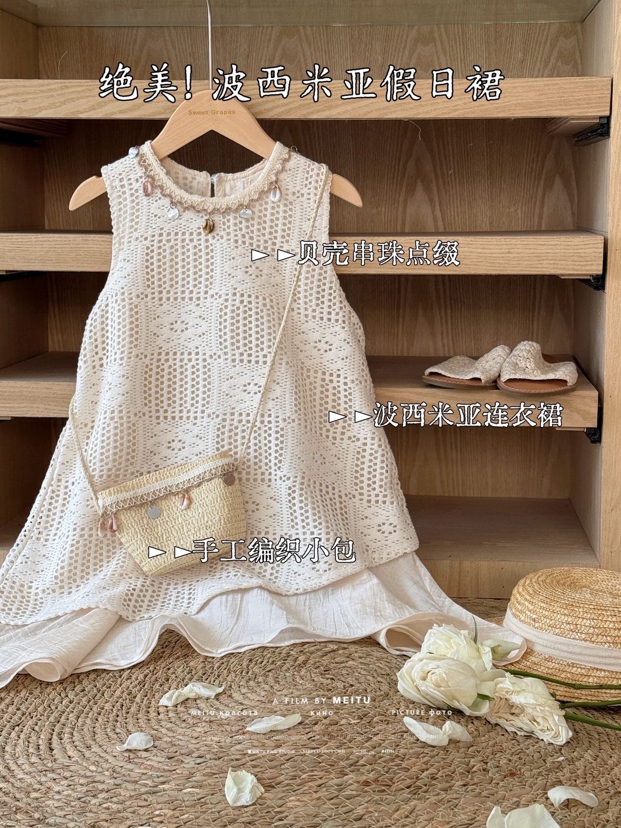 여자 여름 2025 새로운 어린이 조끼 원피스 여름 남부 프랑스 휴일 치마 (가방 보내기)스토어 가기