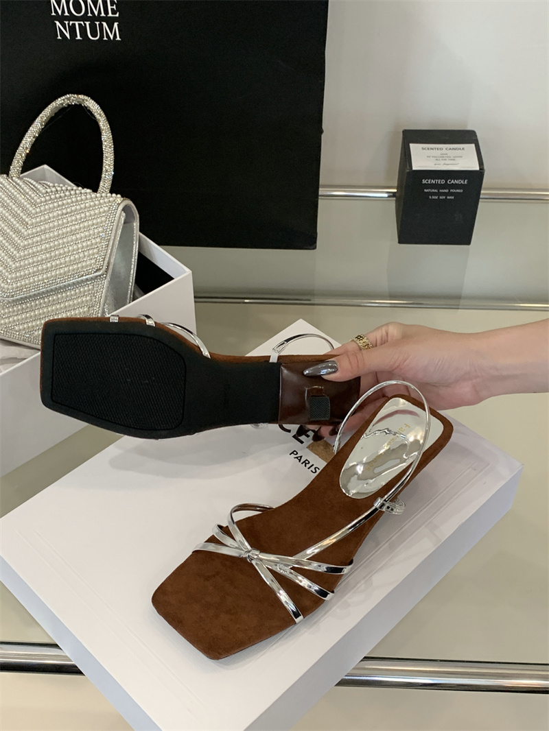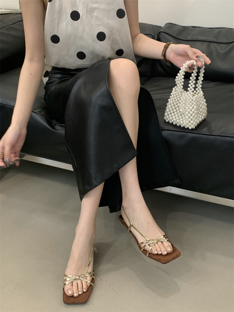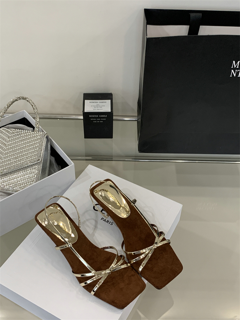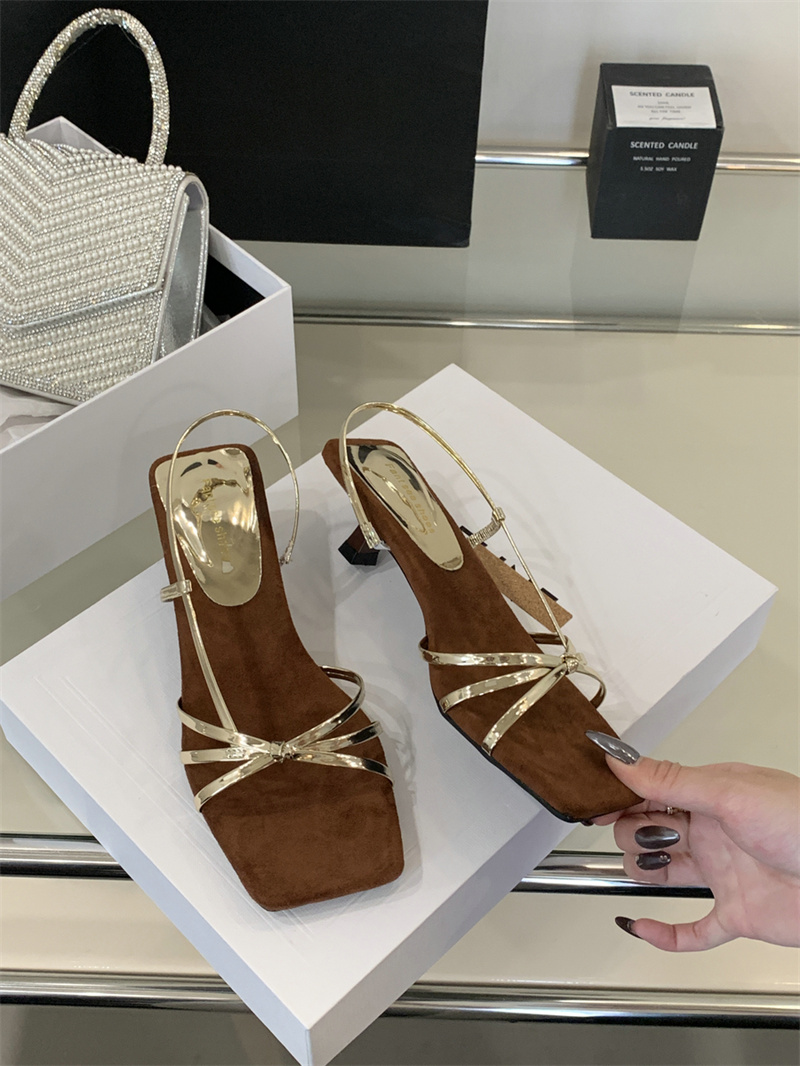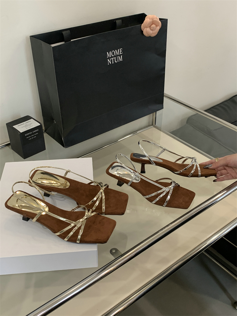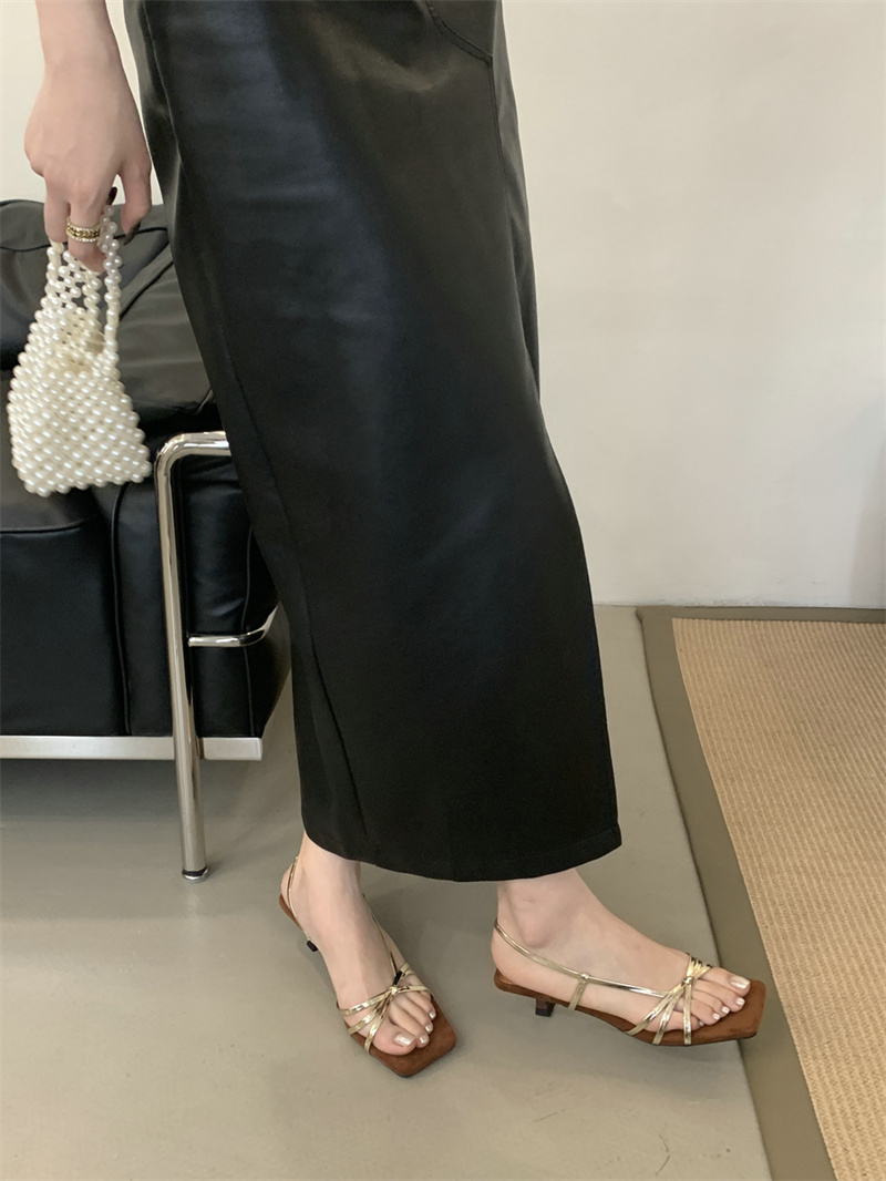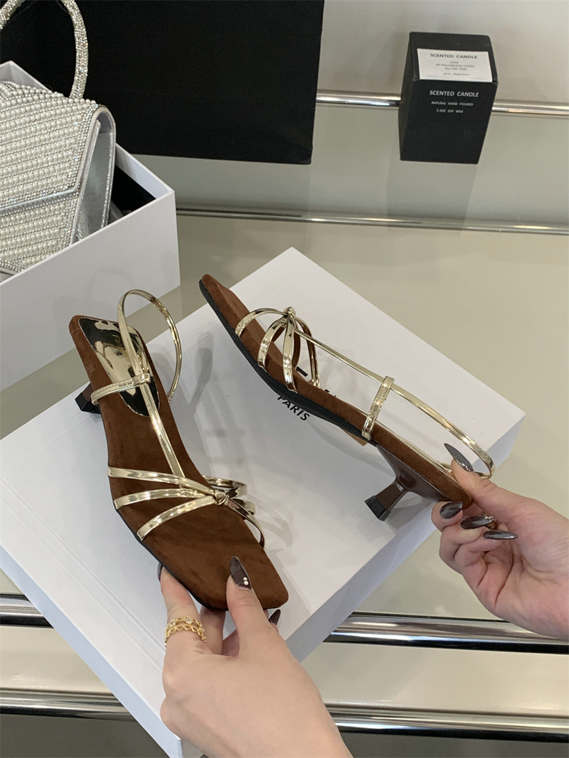 골든 하이힐 우아한 프렌치 스틸레토 샌들 여성 아우터웨어 2025 여름 요정 휴일 원피스 로마 샌들스토어 가기