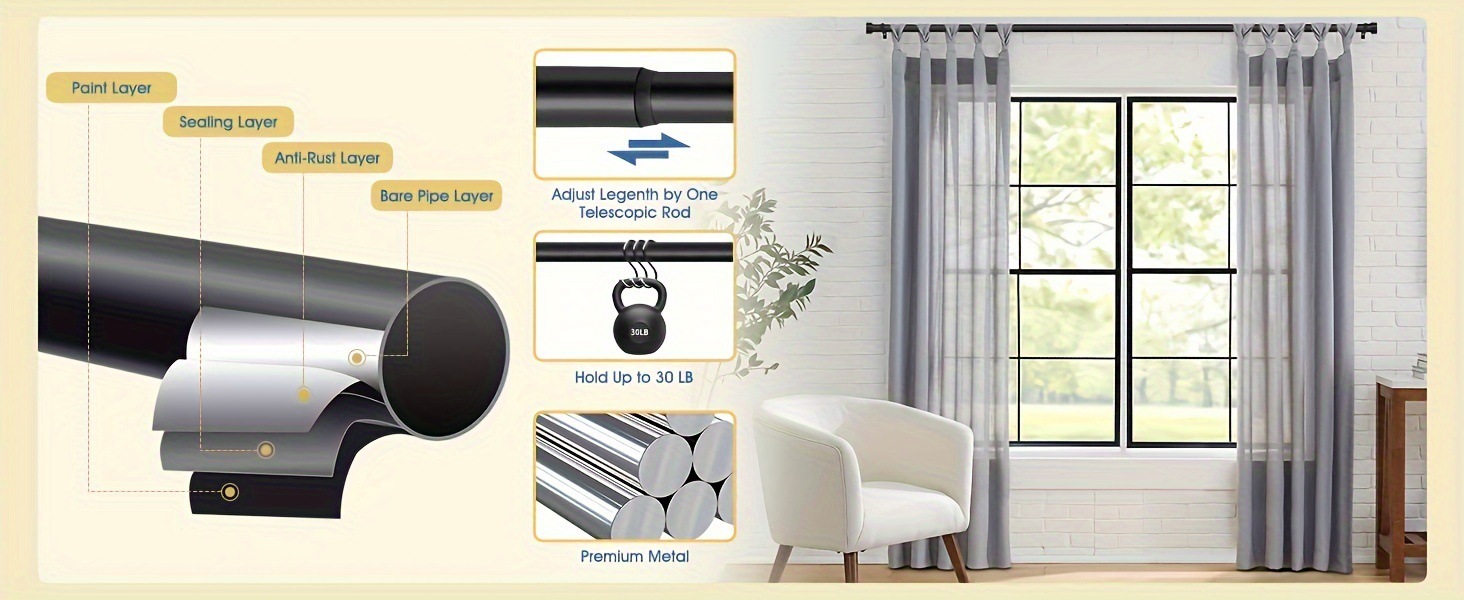 커튼 봉, 1인치 조절식 커튼 봉, 헤비 듀티