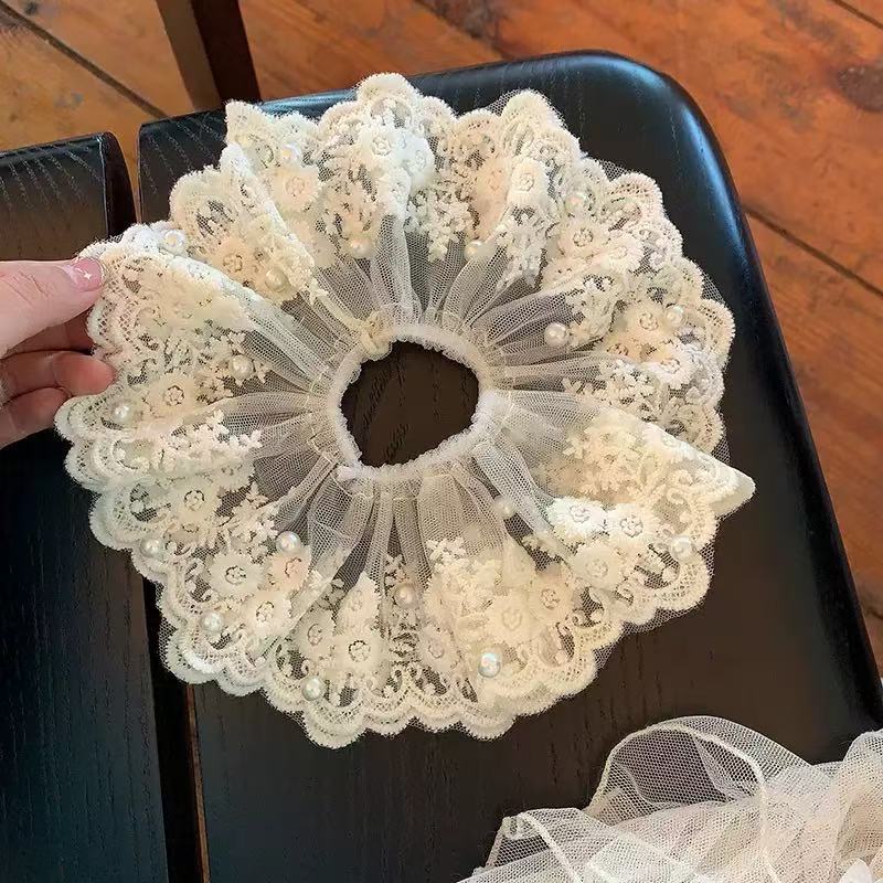 • [오프화이트] 4겹 레이스 자수 - 머리끈 약 15cm