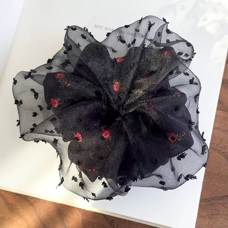 • [레드플라워] 메쉬꽃무늬 - 머리끈 약 19cm