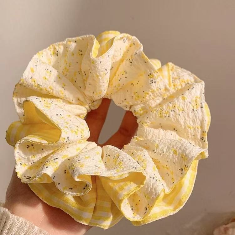 • [옐로우] 꽃무늬 체크무늬 - 머리끈 약 15cm