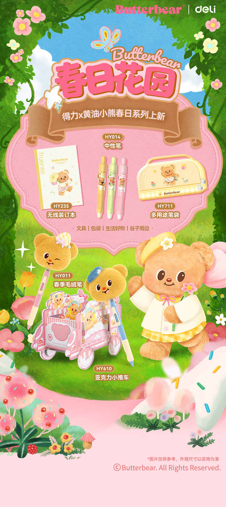 델리 HY199 버터 베어 미니 스테이플러 세트 학생 휴대용 만화 사무실 문서 바인딩 기계스토어 가기
