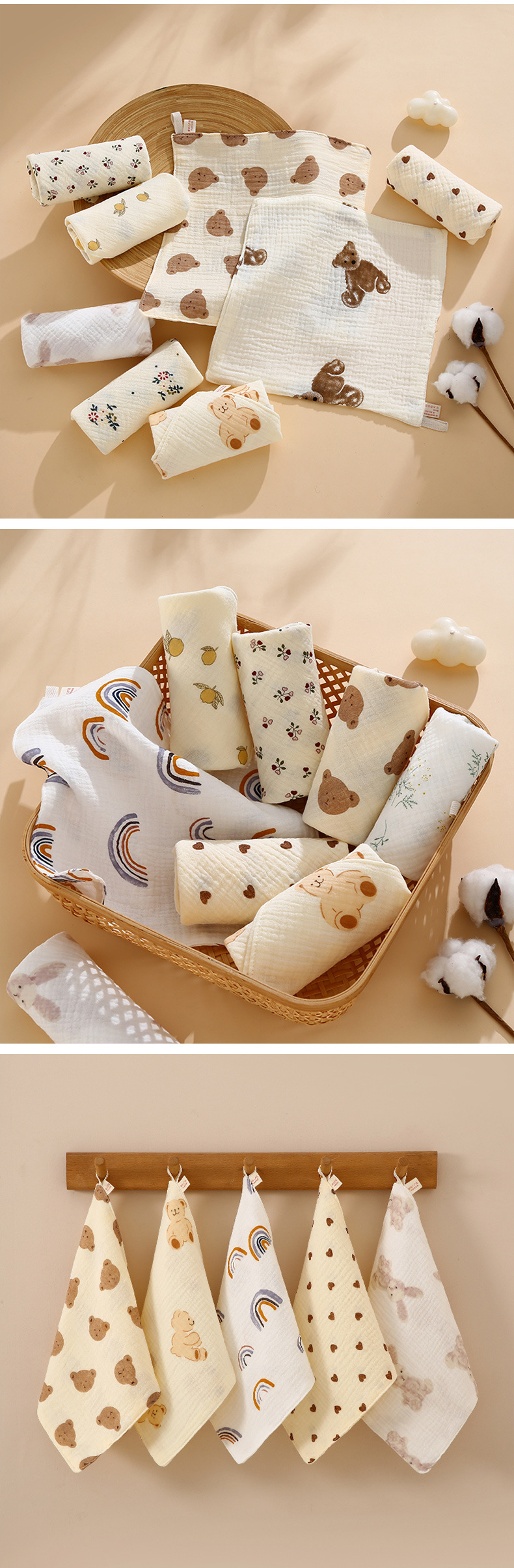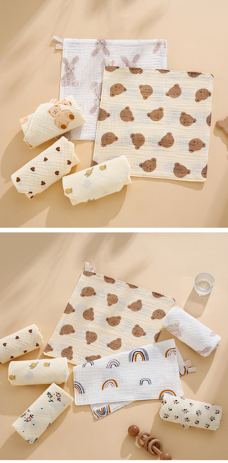 아기 거즈 작은 사각형 수건 클래스 A 순면 만화 신생아 아기 얼굴 수건 4 층 크레페 침 수건