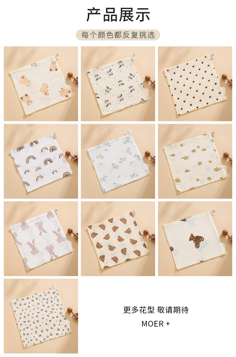 아기 거즈 작은 사각형 수건 클래스 A 순면 만화 신생아 아기 얼굴 수건 4 층 크레페 침 수건스토어 가기