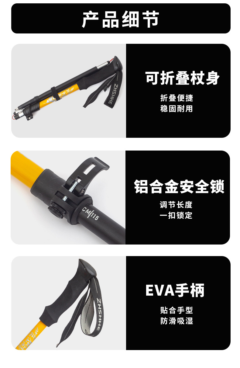7075 알루미늄 합금 하이킹 스틱 접이식 워킹 스틱 전문 야외 등반 장비 울트라 라이트 휴대용 망원경