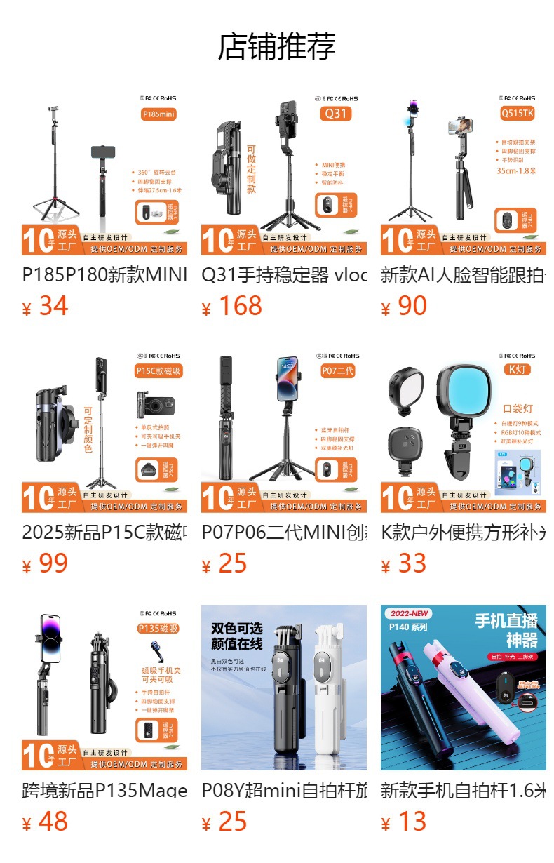 专注自拍杆、补光灯、直播支架、蓝牙三脚架设计制造商,