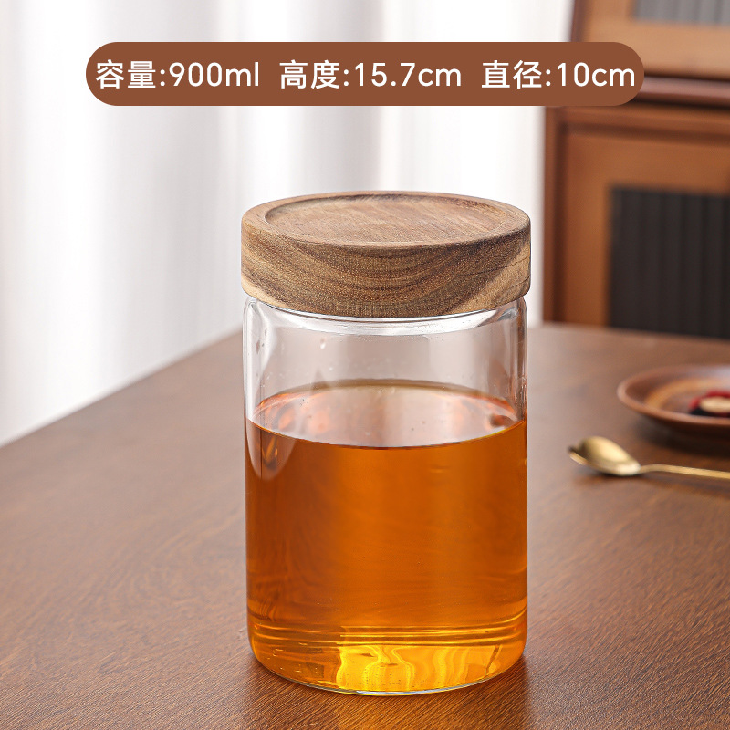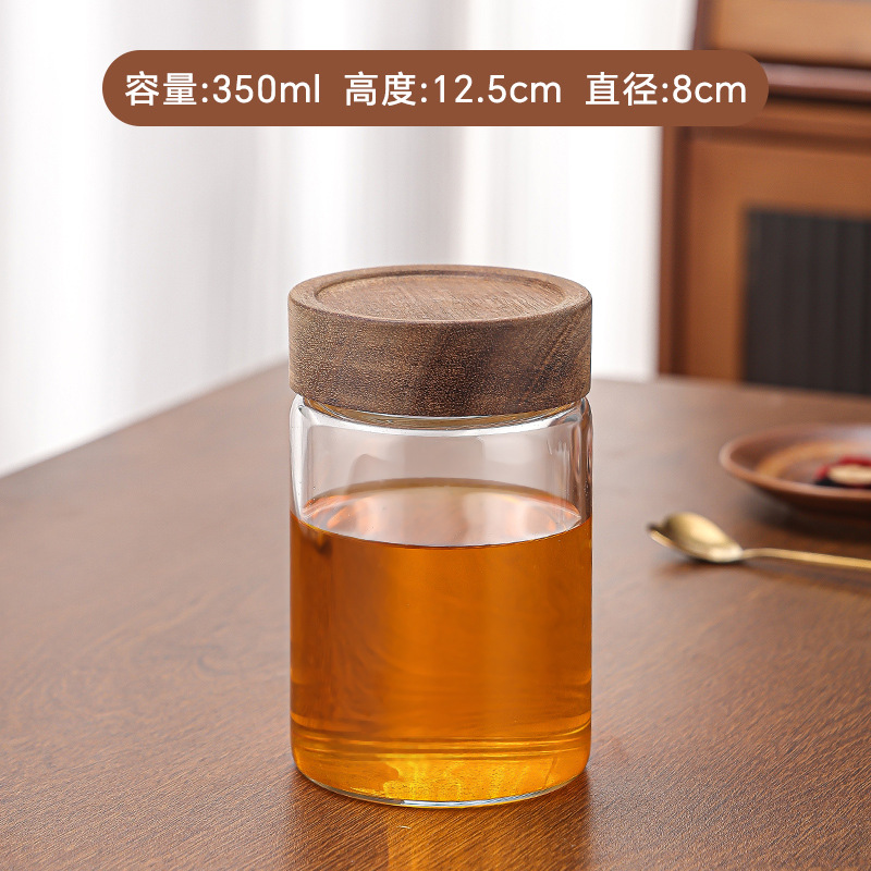 아카시아 나무 유리 저장 용기 꿀 저장 용기 밀봉 저장 빈 병 주방 유리 저장 용기스토어 가기