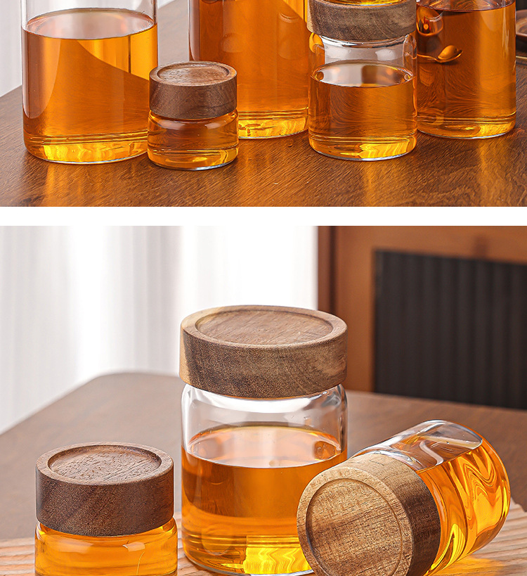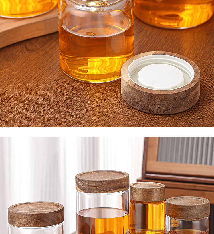 아카시아 나무 유리 저장 용기 꿀 저장 용기 밀봉 저장 빈 병 주방 유리 저장 용기