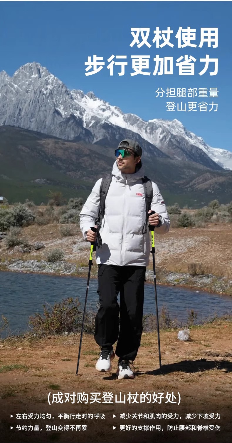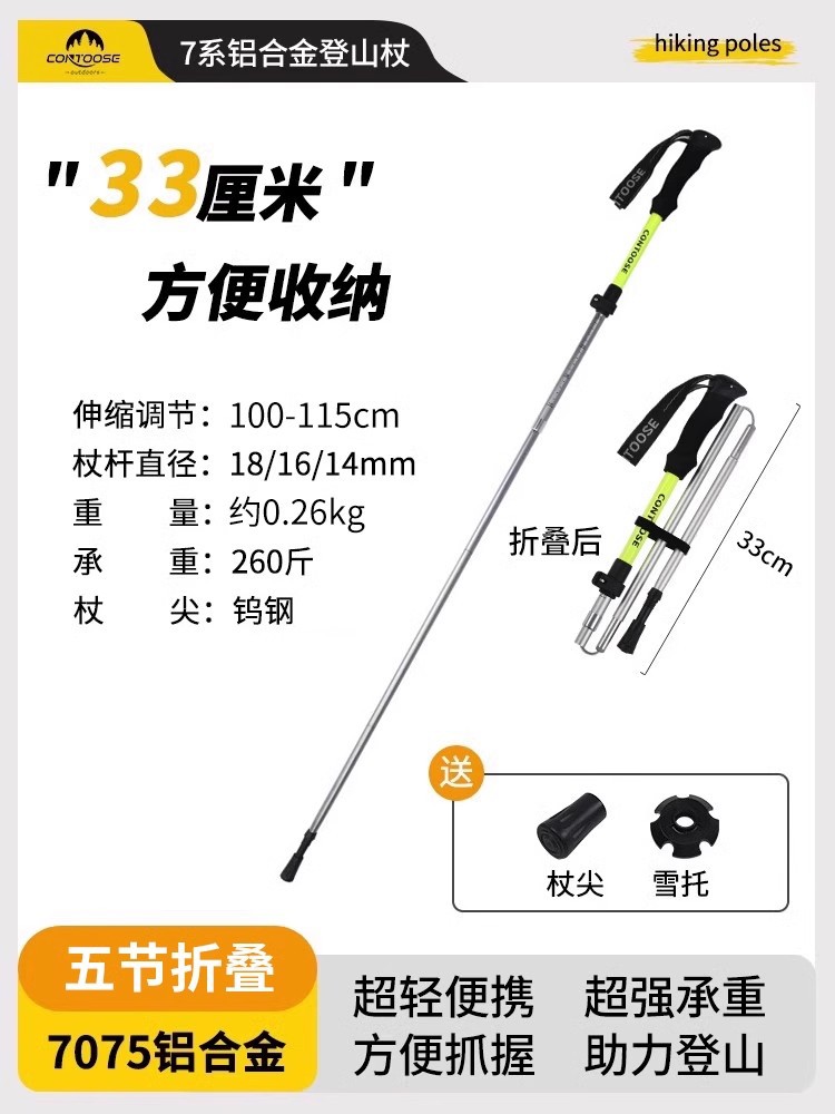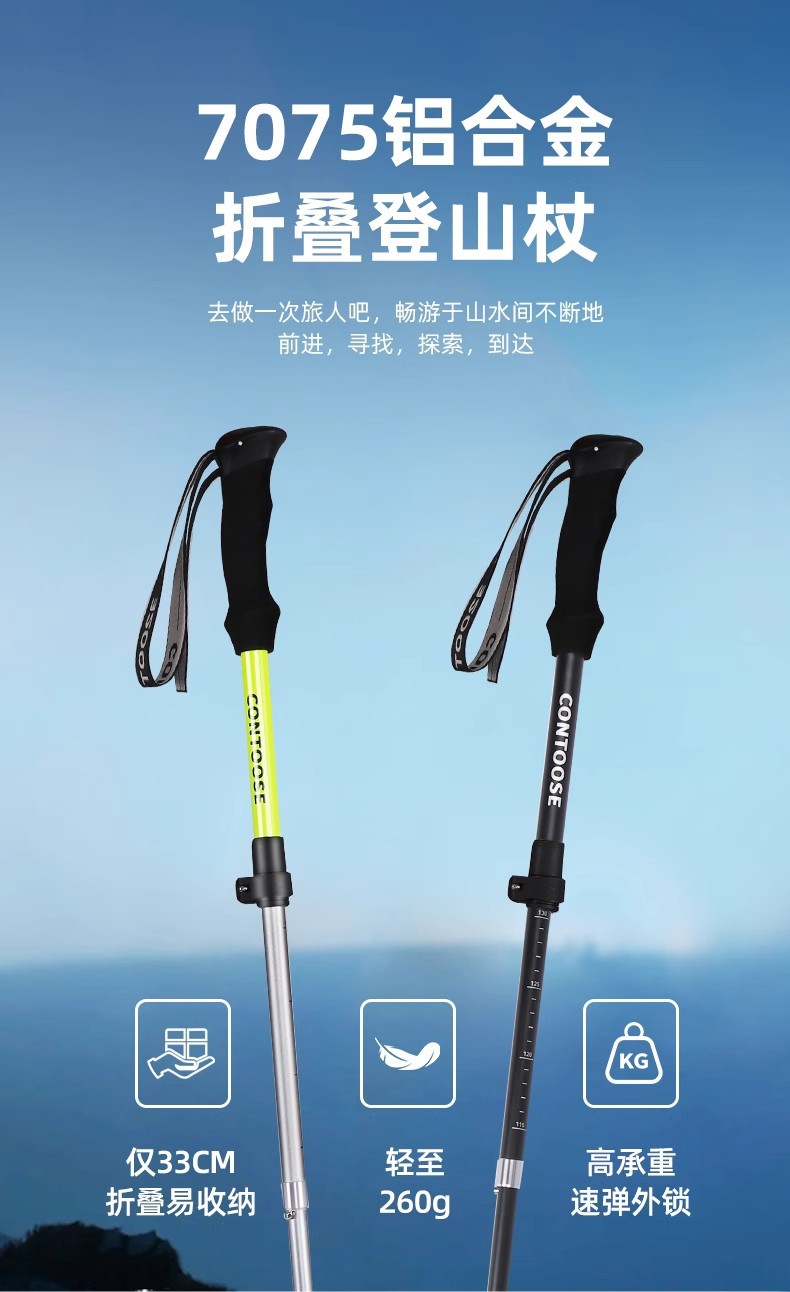 Kuangtu 전문 야외 등산 스틱 워킹 스틱 알루미늄 합금 접히는 망원경 스틱 남성과 여성의 등산 목발 하이킹 장비스토어 가기