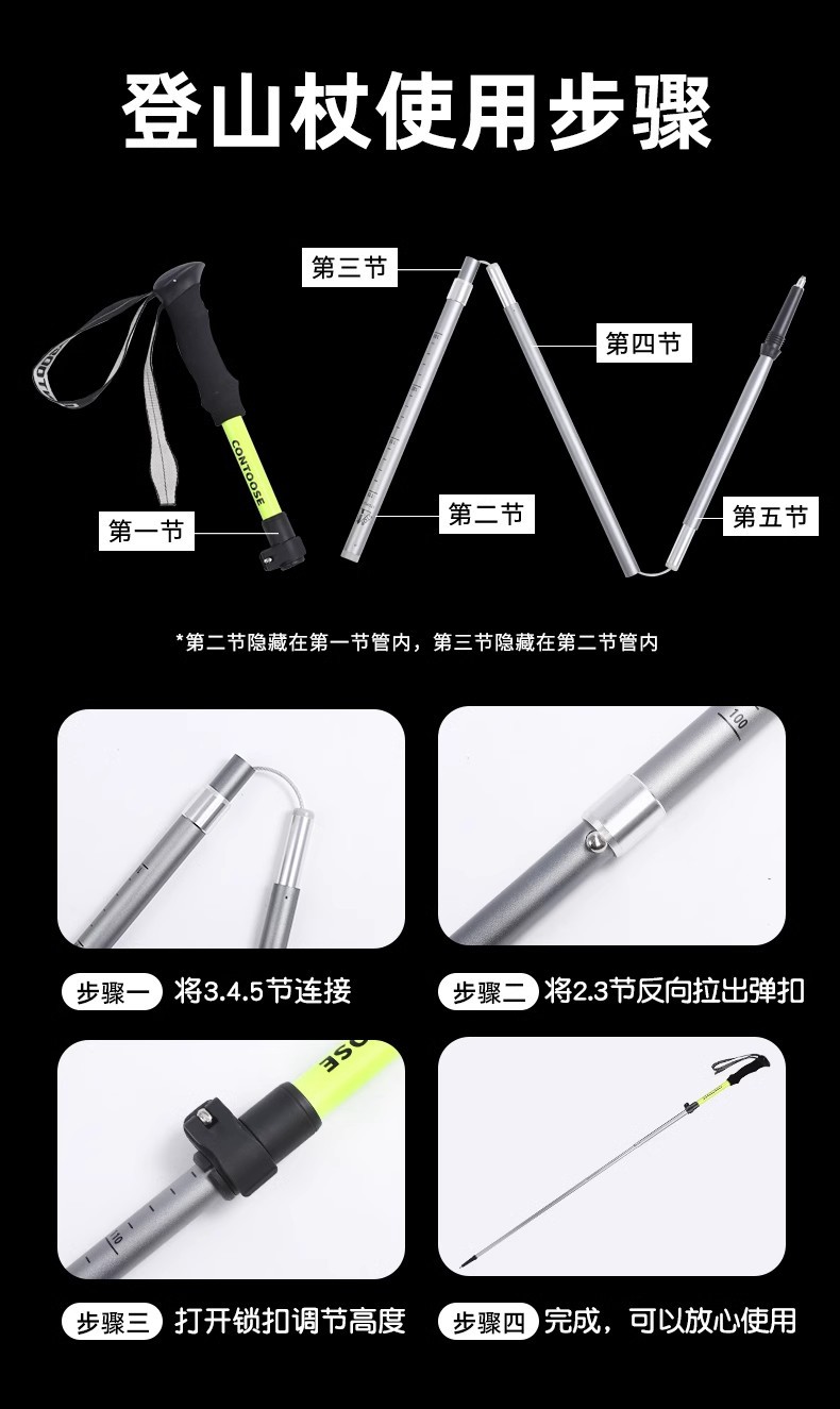 Kuangtu 전문 야외 등산 스틱 워킹 스틱 알루미늄 합금 접히는 망원경 스틱 남성과 여성의 등산 목발 하이킹 장비