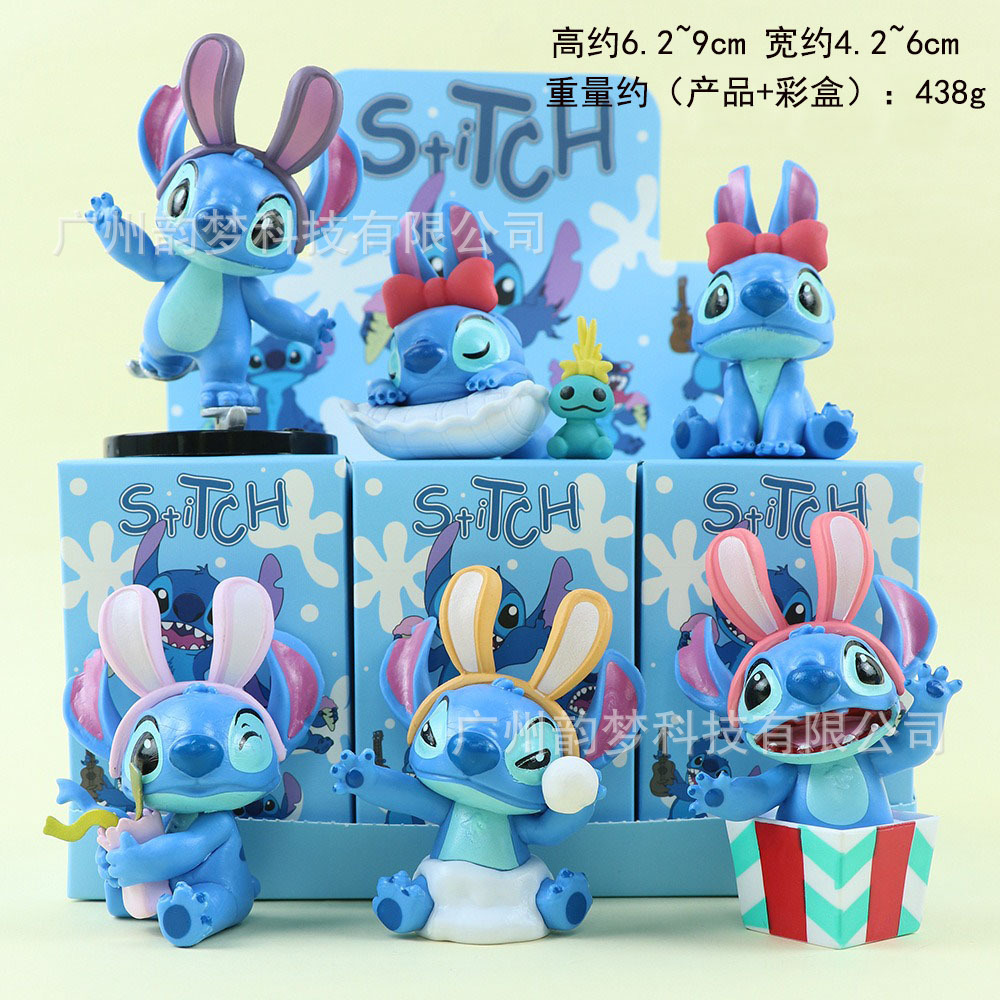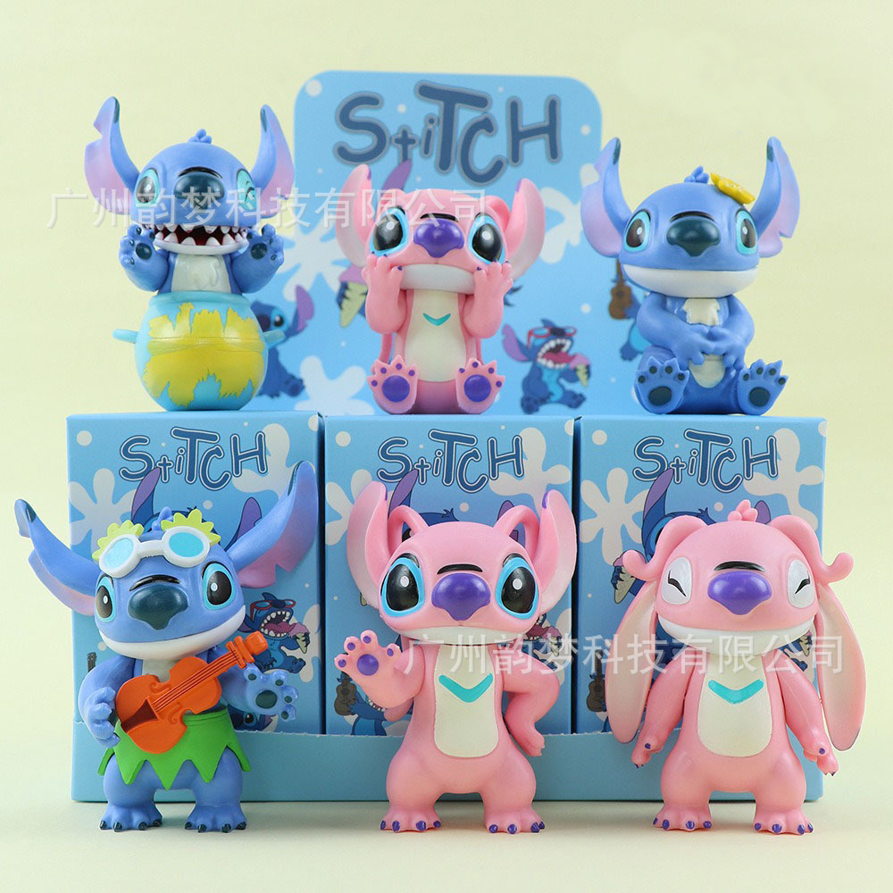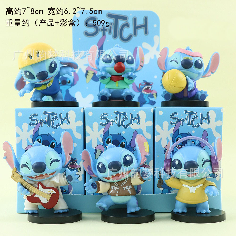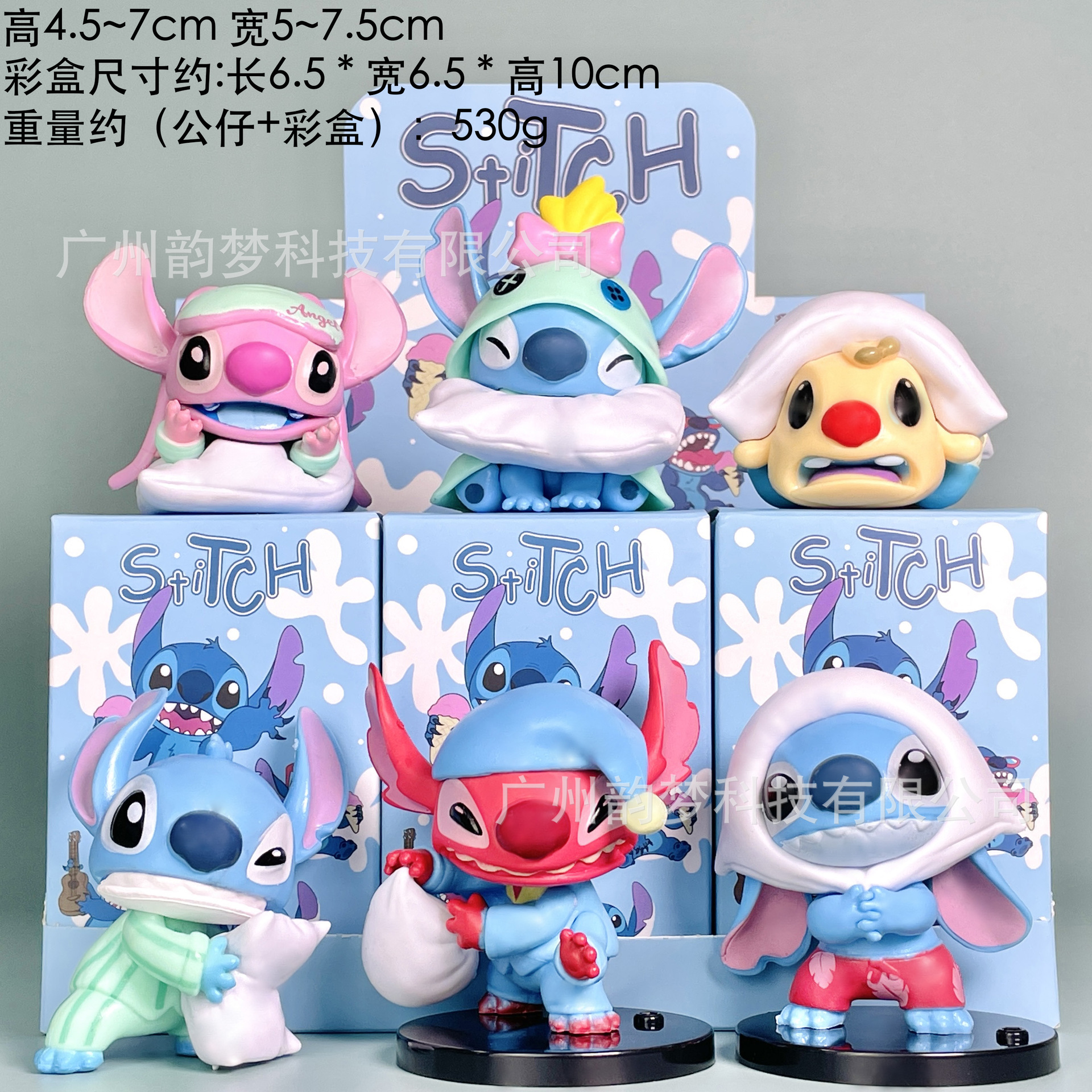 국경 간 무료 배송 6 겨울 스토리 스티치 피규어 릴로와 스티치 인형 블라인드 박스 가샤폰 인형 기계 장식품