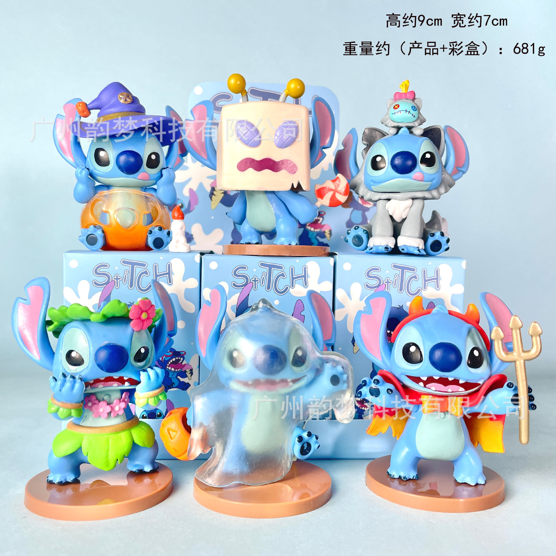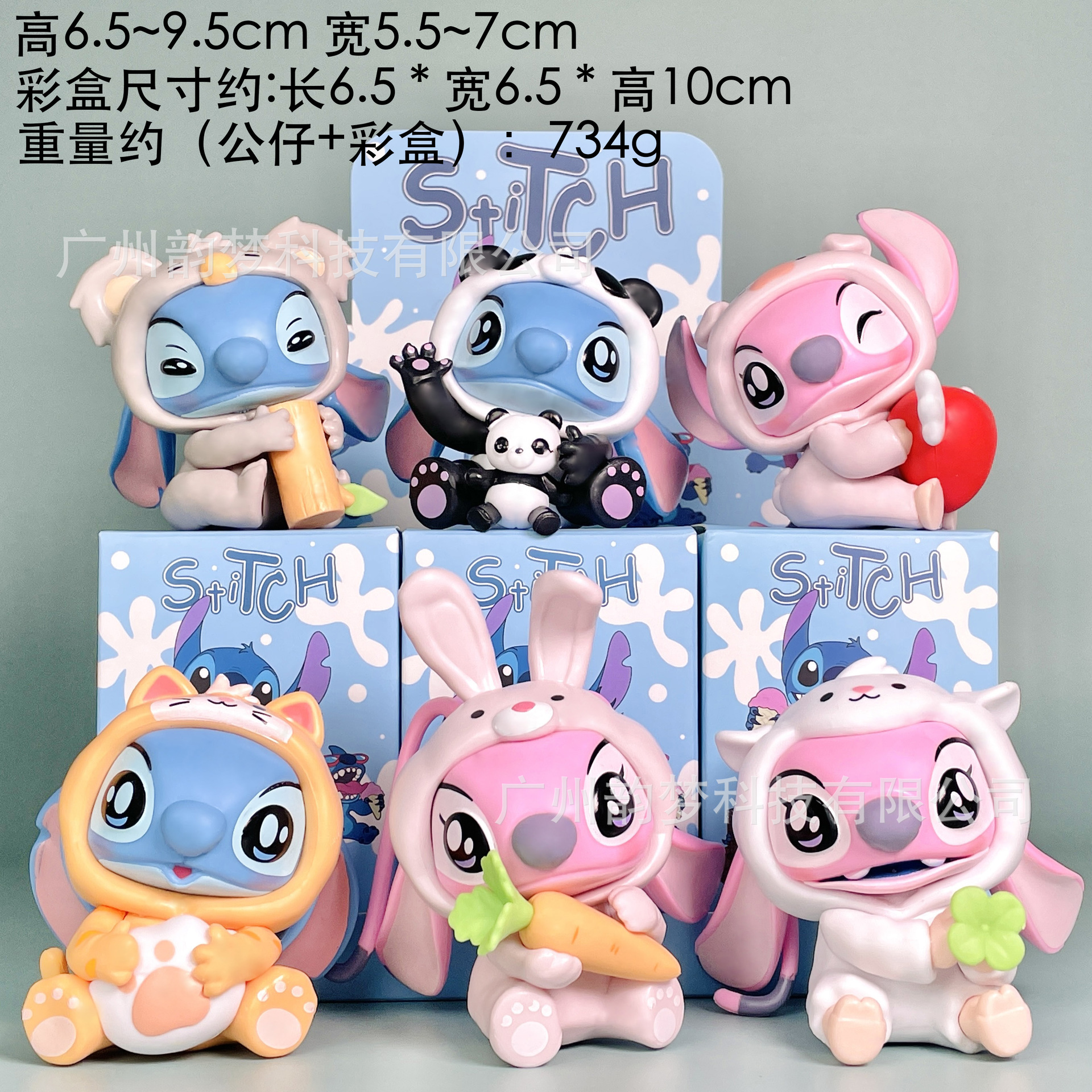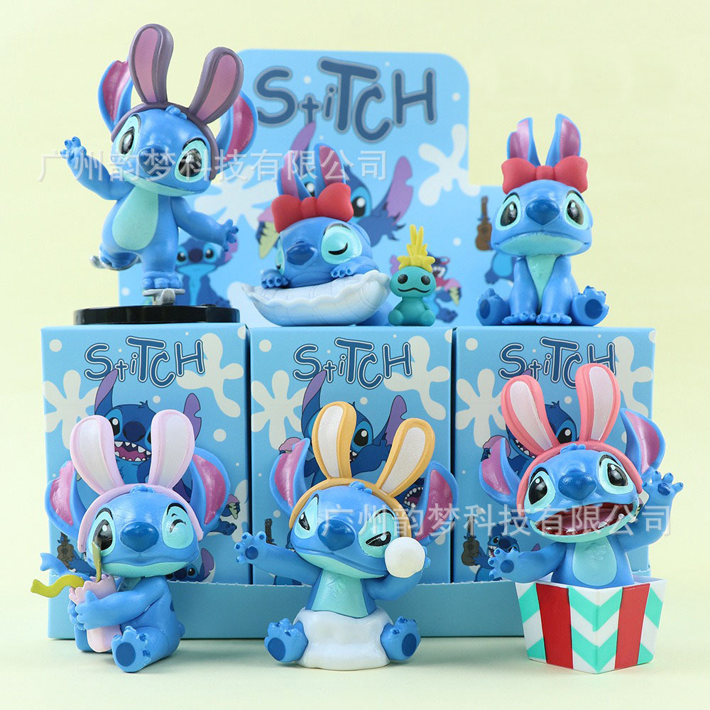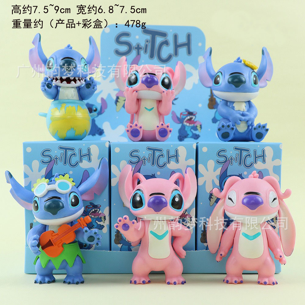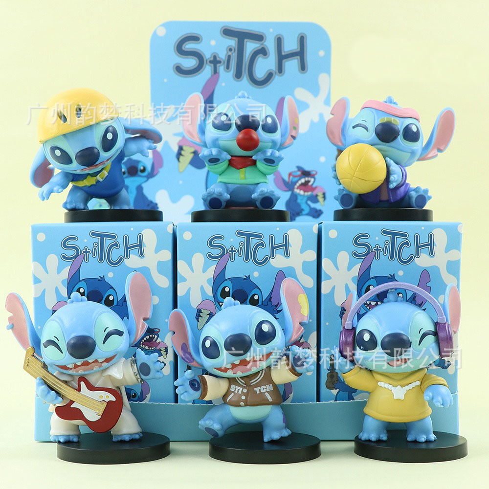 국경 간 무료 배송 6 겨울 스토리 스티치 피규어 릴로와 스티치 인형 블라인드 박스 가샤폰 인형 기계 장식품