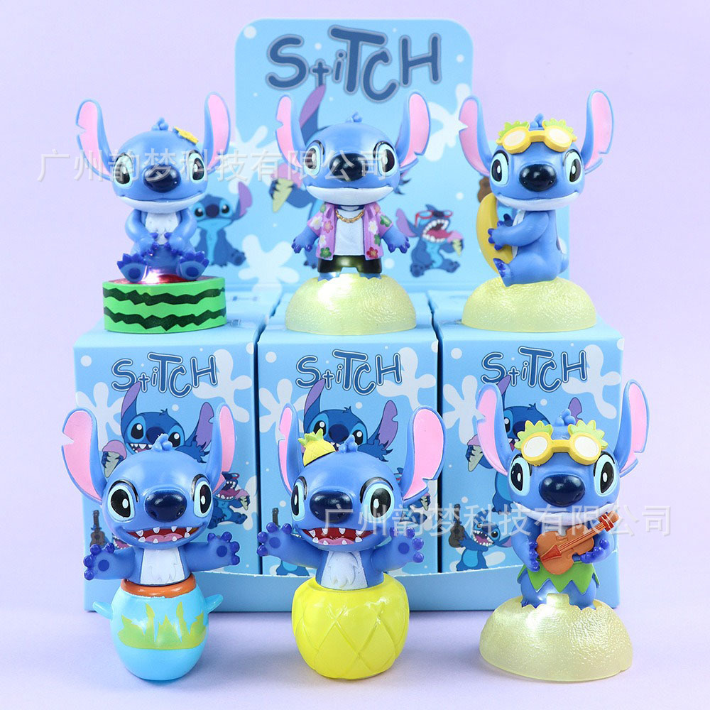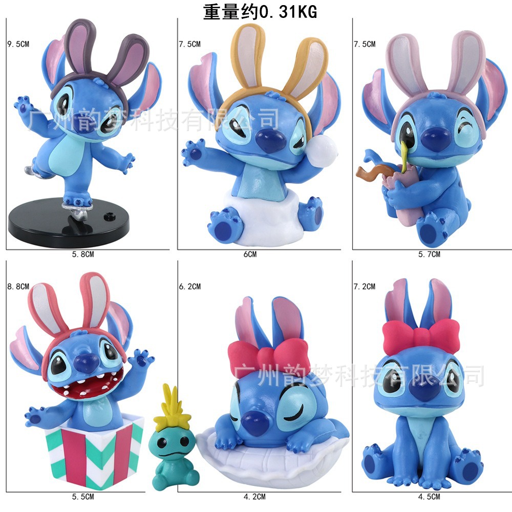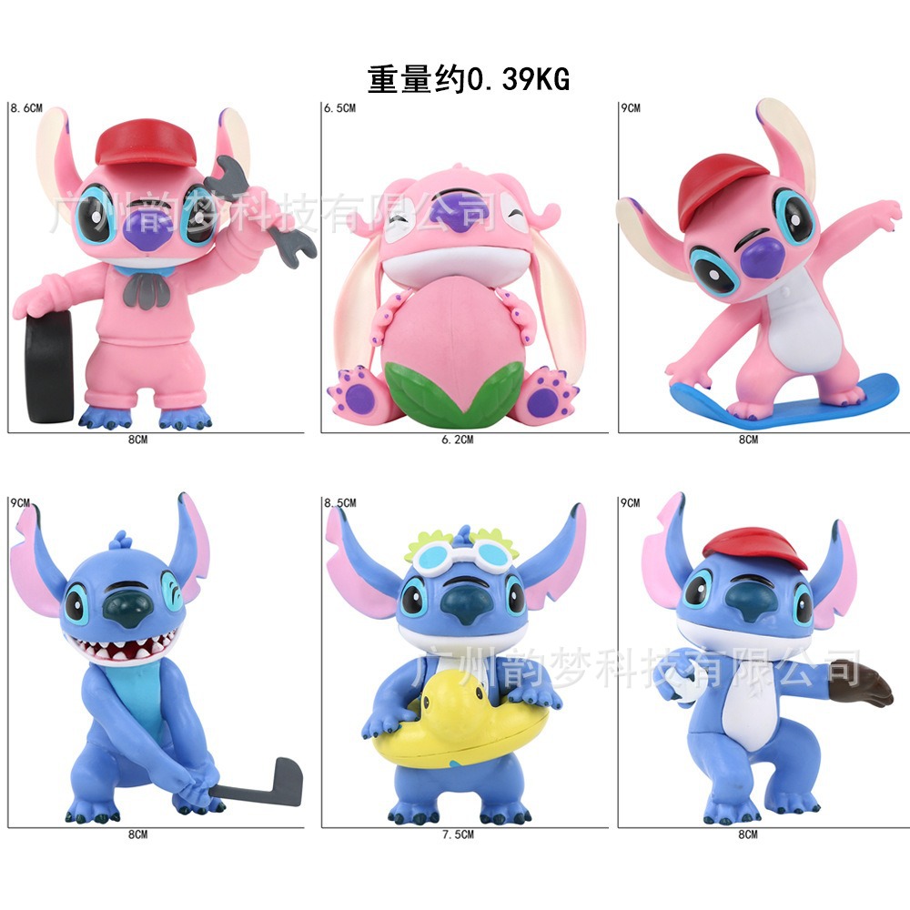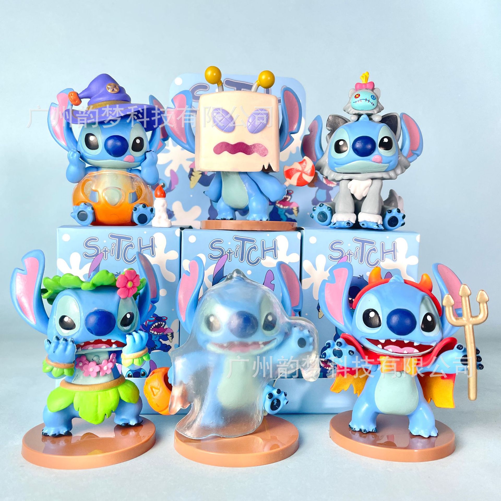 국경 간 무료 배송 6 겨울 스토리 스티치 피규어 릴로와 스티치 인형 블라인드 박스 가샤폰 인형 기계 장식품
