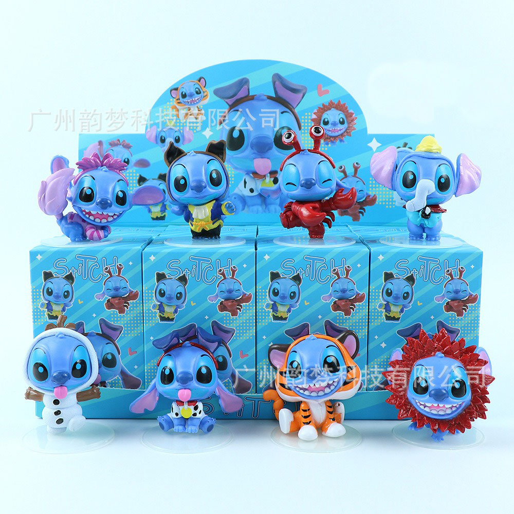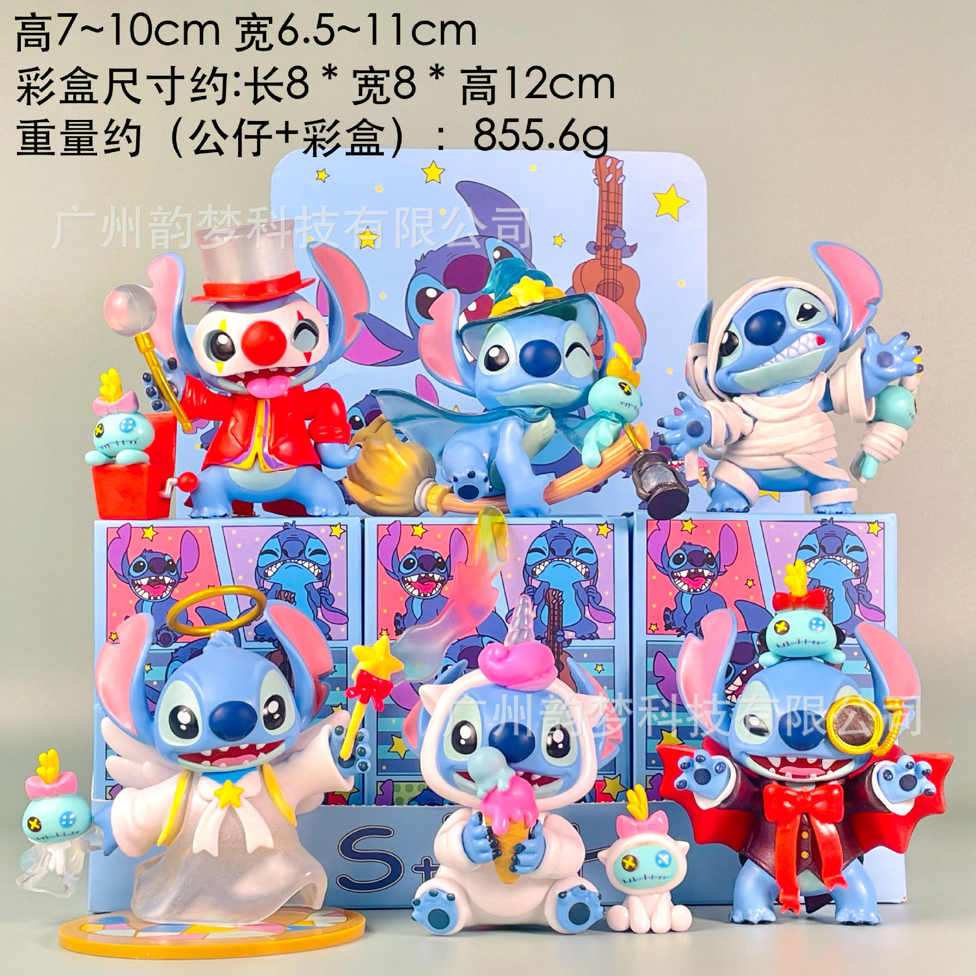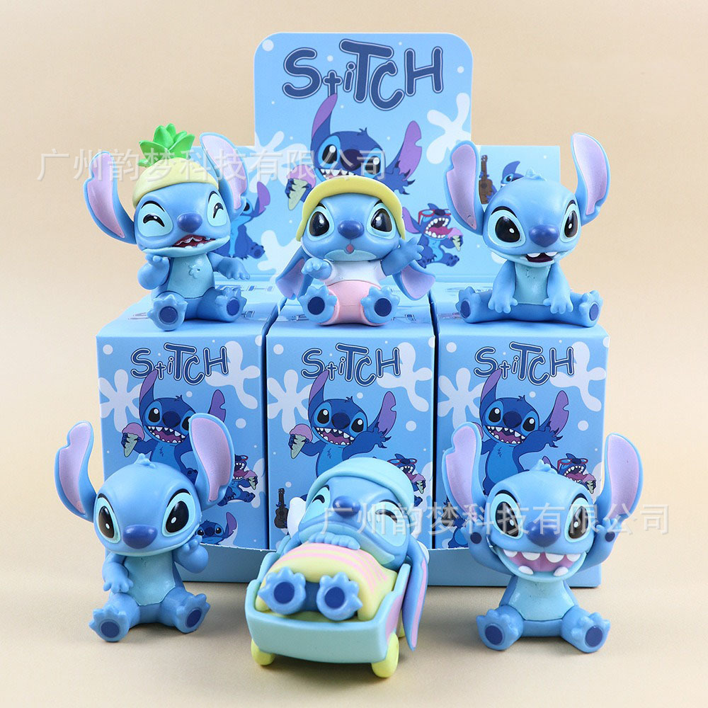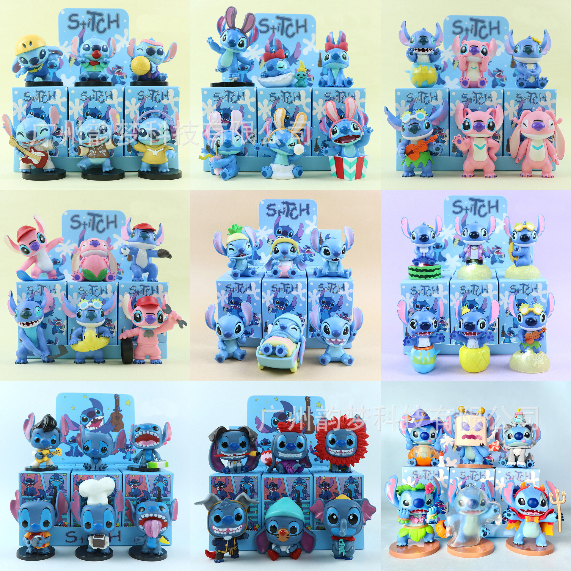 국경 간 무료 배송 6 겨울 스토리 스티치 피규어 릴로와 스티치 인형 블라인드 박스 가샤폰 인형 기계 장식품스토어 가기