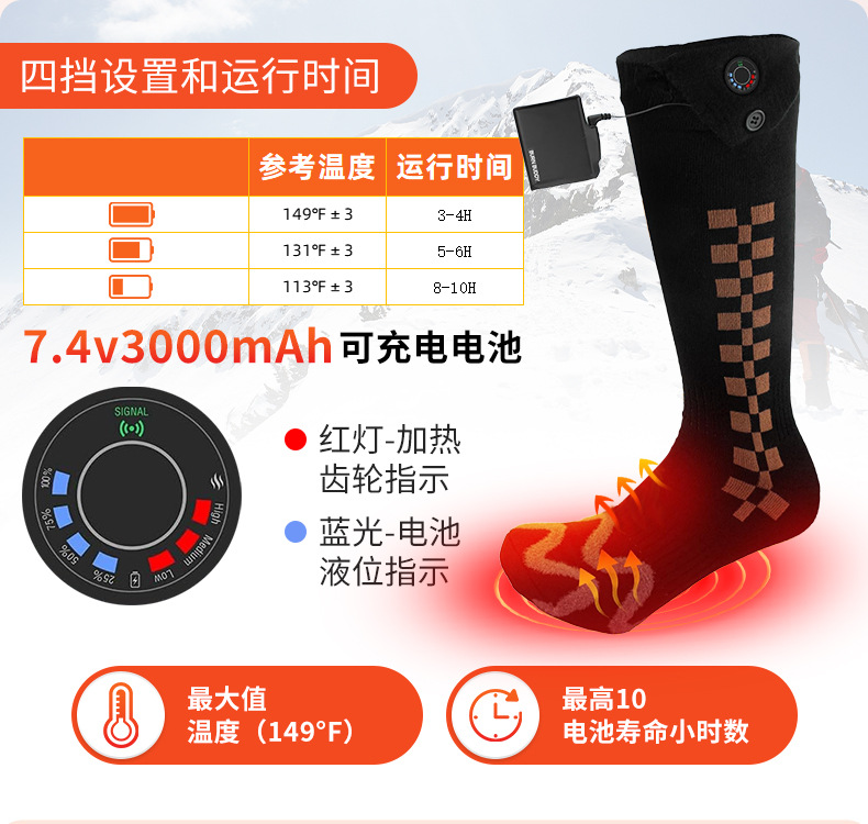 Amazon 유럽 및 미국 앱 스마트 가열 양말 맞춤형 야외 스키 및 사이클링 따뜻한 가열 양말 가열 양말스토어 가기