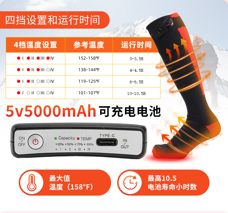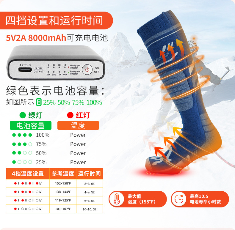 Amazon 유럽 및 미국 앱 스마트 가열 양말 맞춤형 야외 스키 및 사이클링 따뜻한 가열 양말 가열 양말