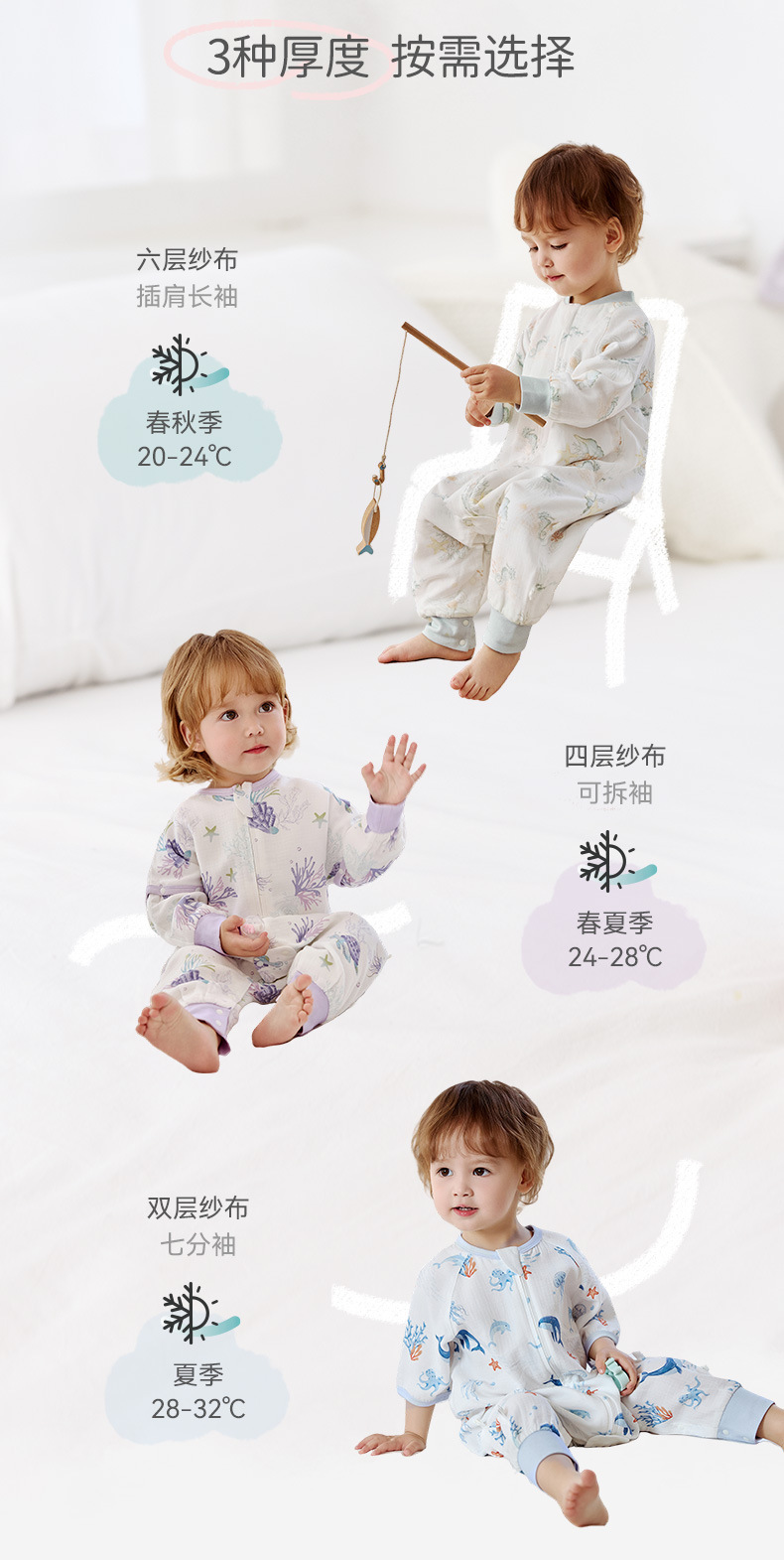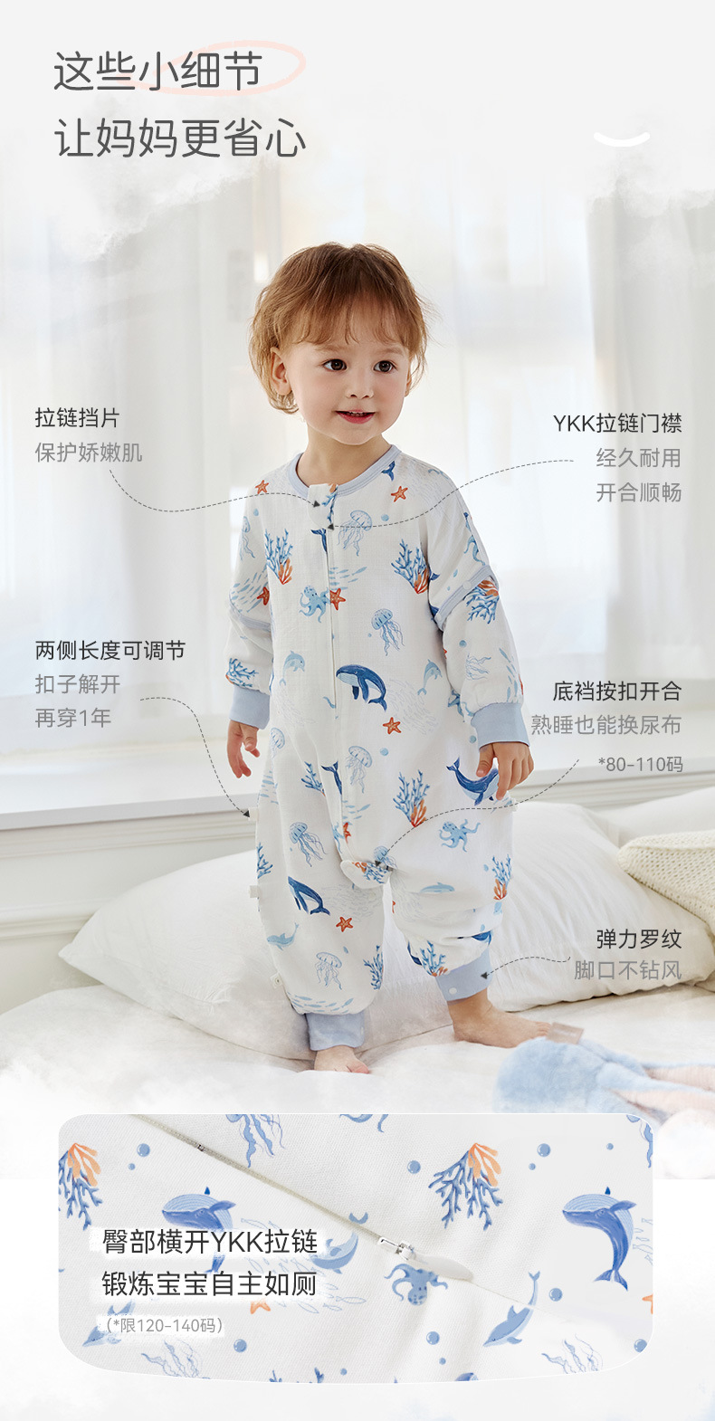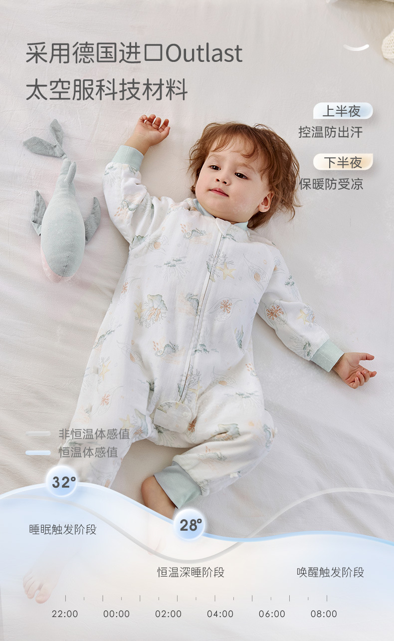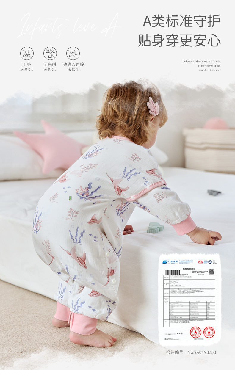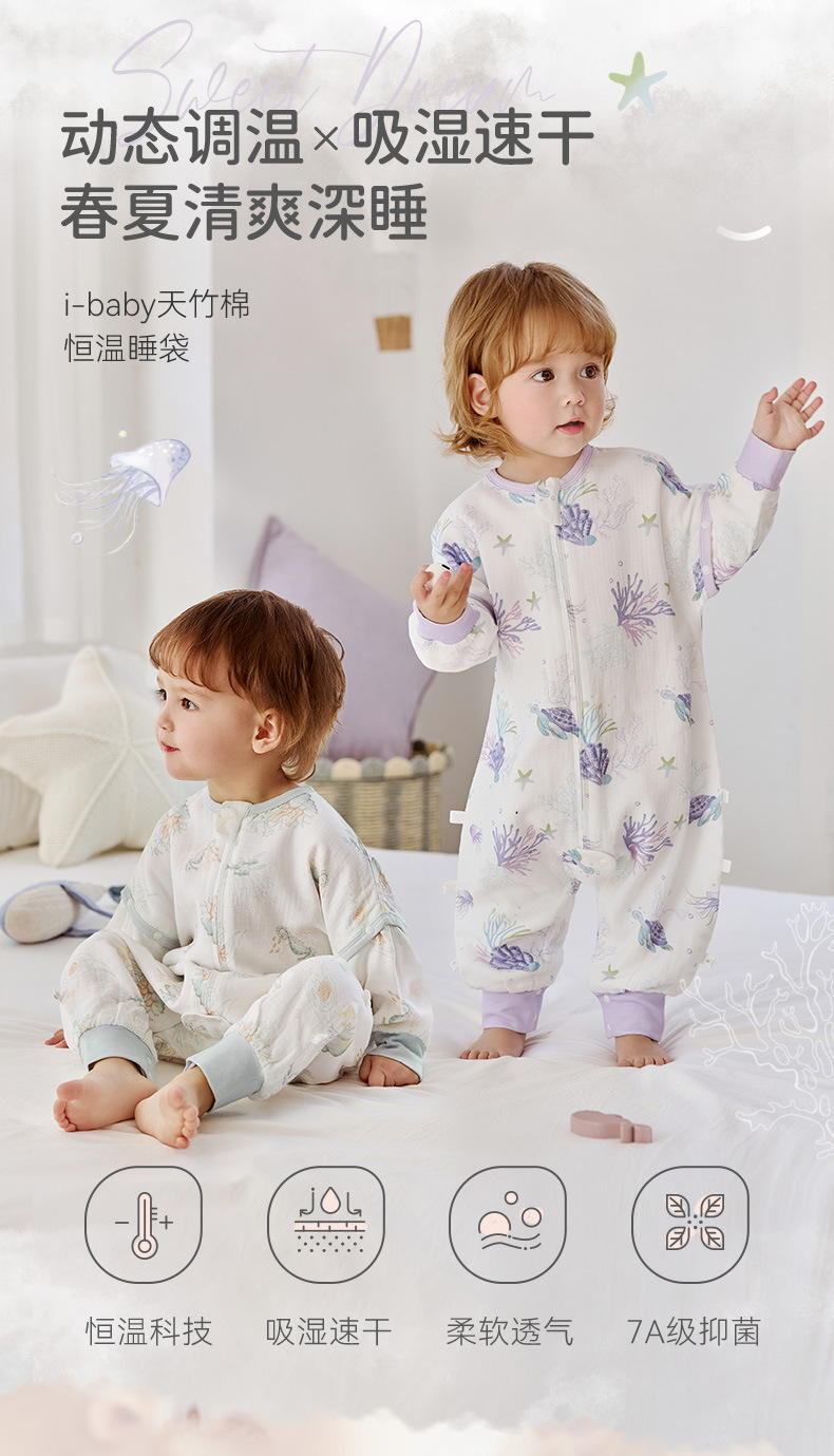 25 New ibaby/British Baby 더블 레이어 거즈 항온 다리 분리형 침낭 여름 어린이 안티 킥 이불스토어 가기
