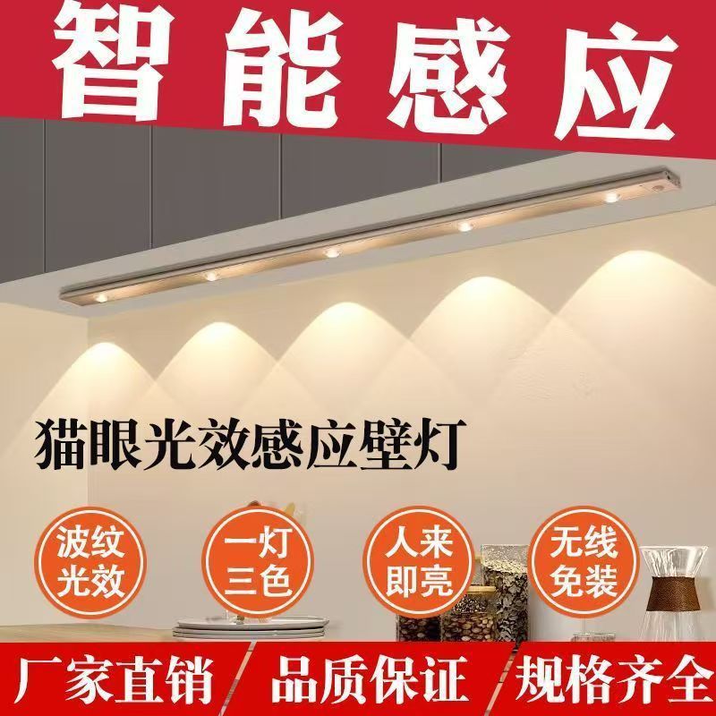 통청 스마트 충전식 센서 램프 초박형 캣아이 힐 라이트 바 인체감지 캐비닛 야간등 눈 보호