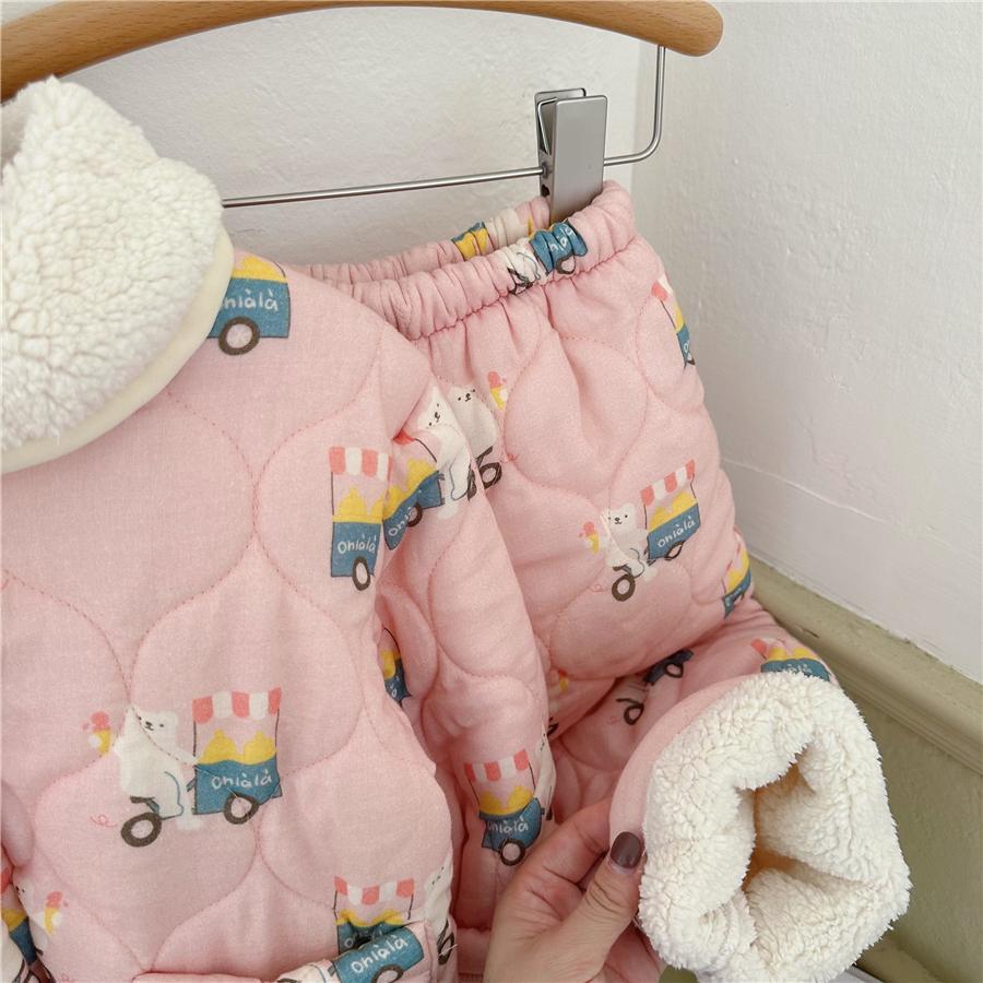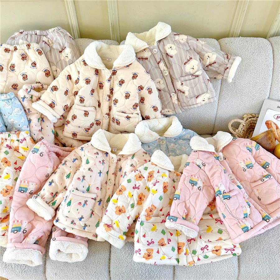 어린이 3 층 누비 만화 가정 의류 한국 스타일 겨울 스타일 소년과 소녀 벨벳 두꺼운 잠옷 아기 따뜻한 양복스토어 가기