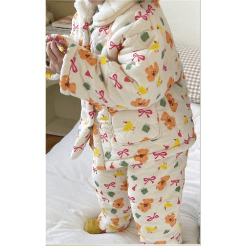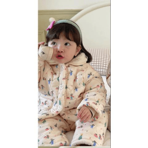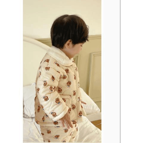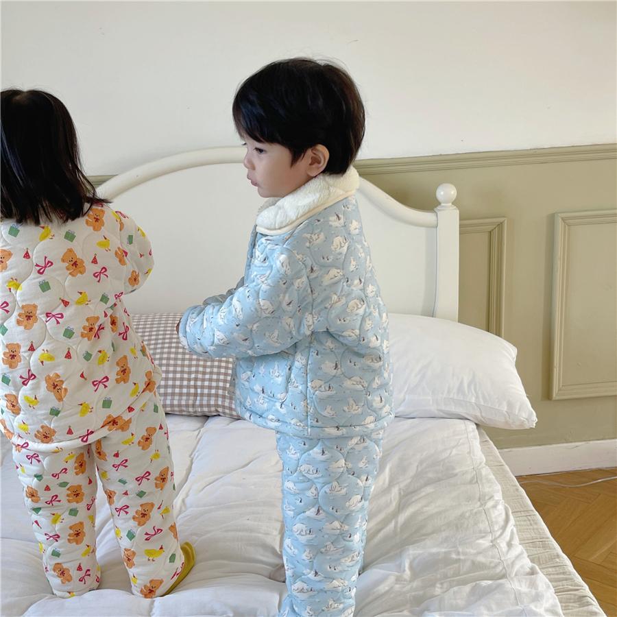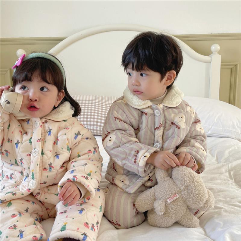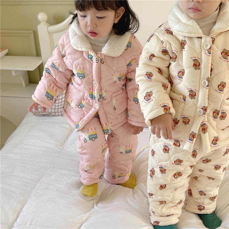 어린이 3 층 누비 만화 가정 의류 한국 스타일 겨울 스타일 소년과 소녀 벨벳 두꺼운 잠옷 아기 따뜻한 양복